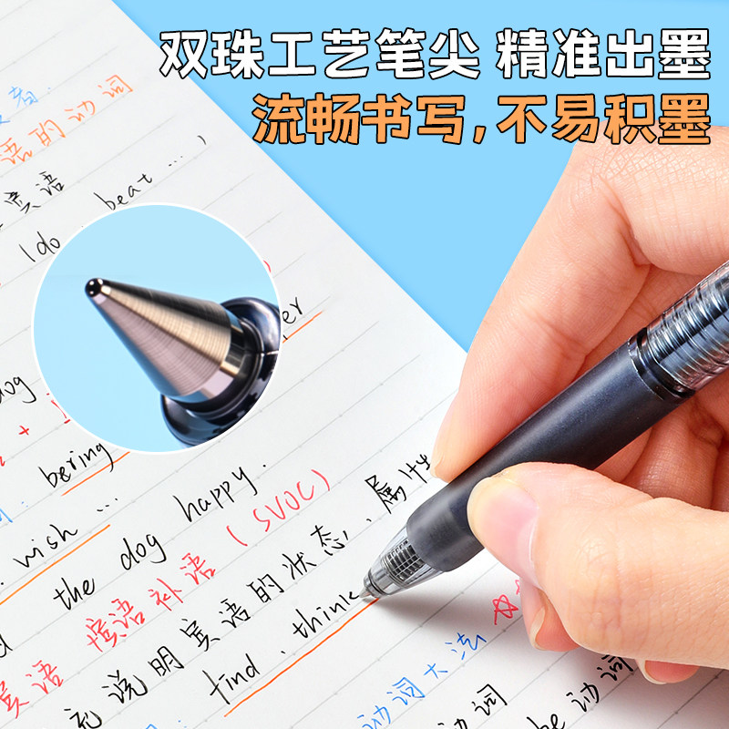 晨光按动中性笔黑色笔速干顺滑高颜值红蓝碳素笔考试办公用签字笔