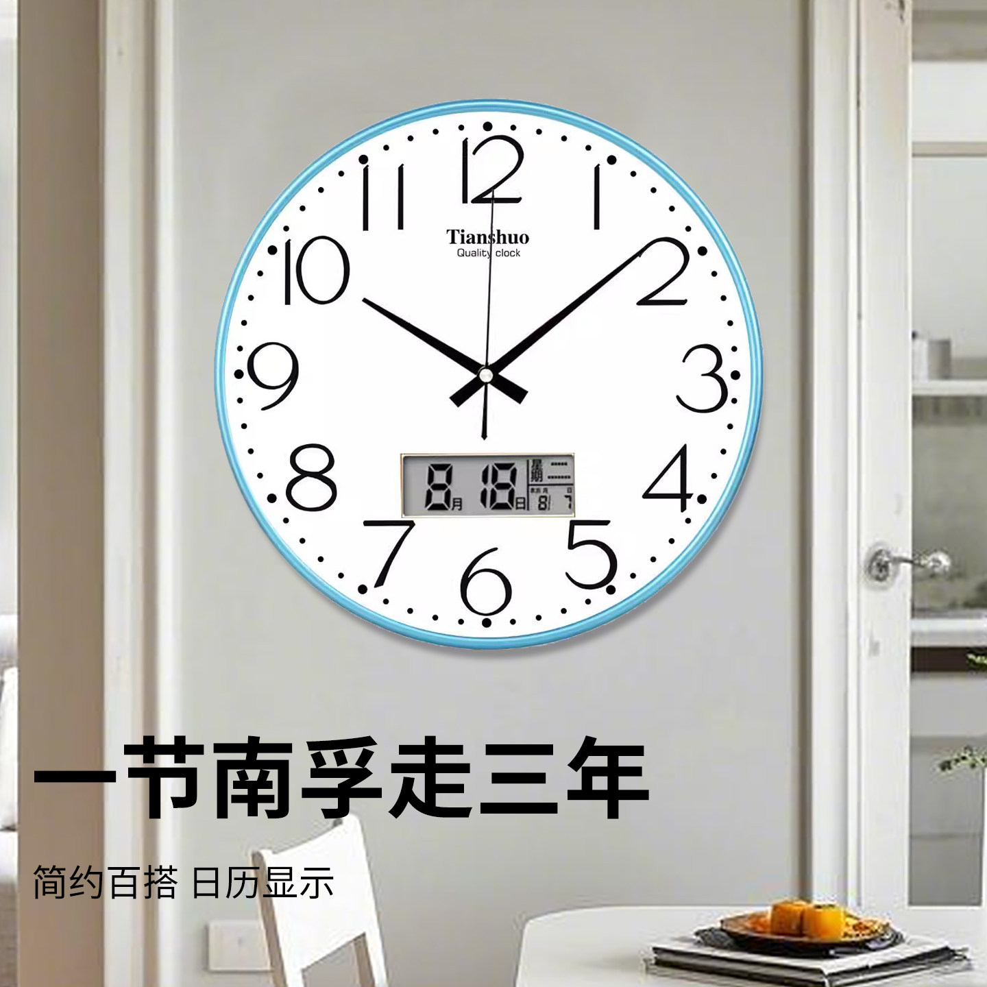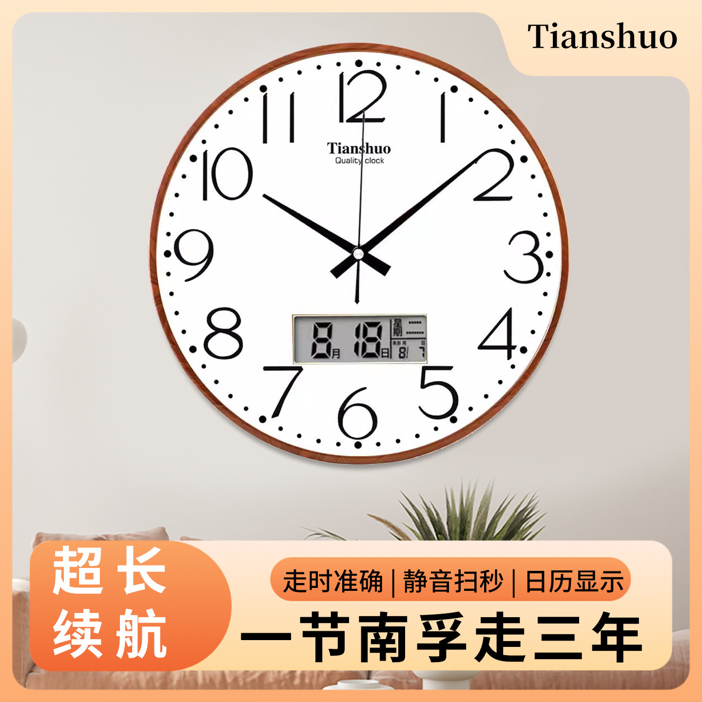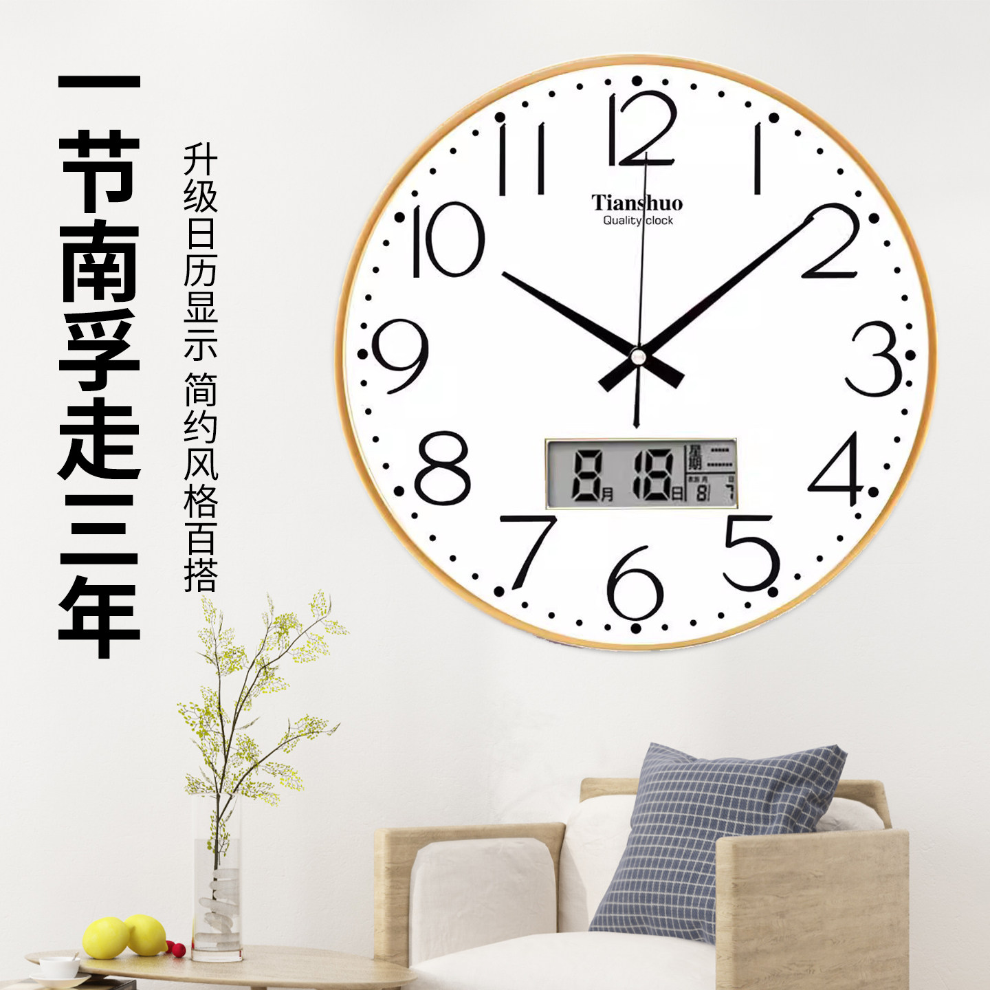 TIMESS钟表挂钟客厅静音钟挂墙日历家用时尚2025新款时钟石英电子