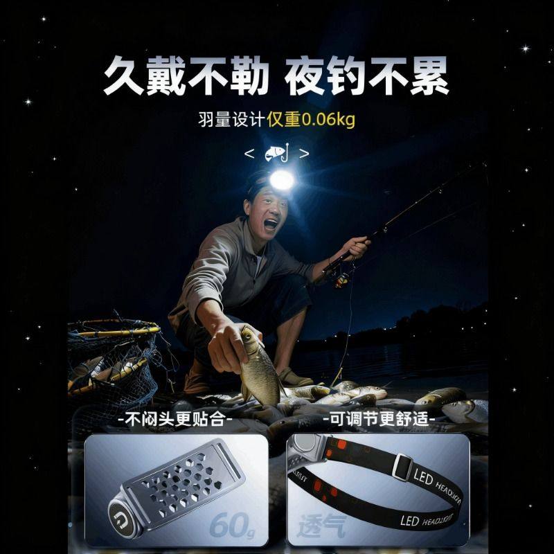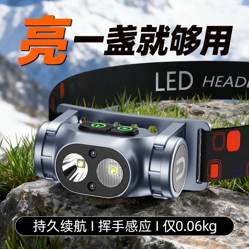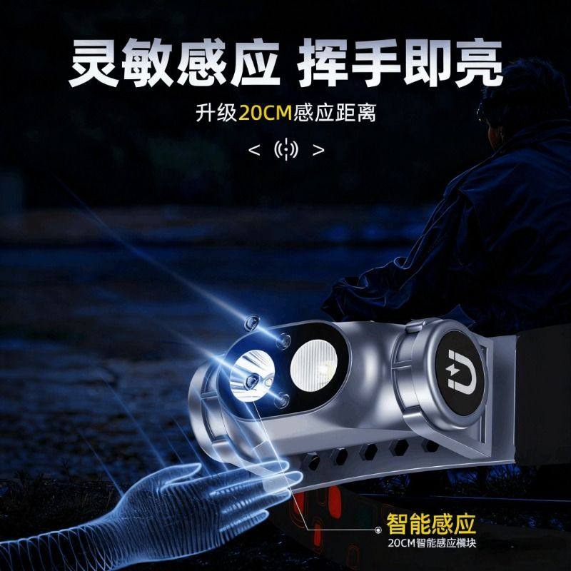 钓鱼头灯2025新款超亮感应充电头戴式照明灯大容量续航登山夜爬灯