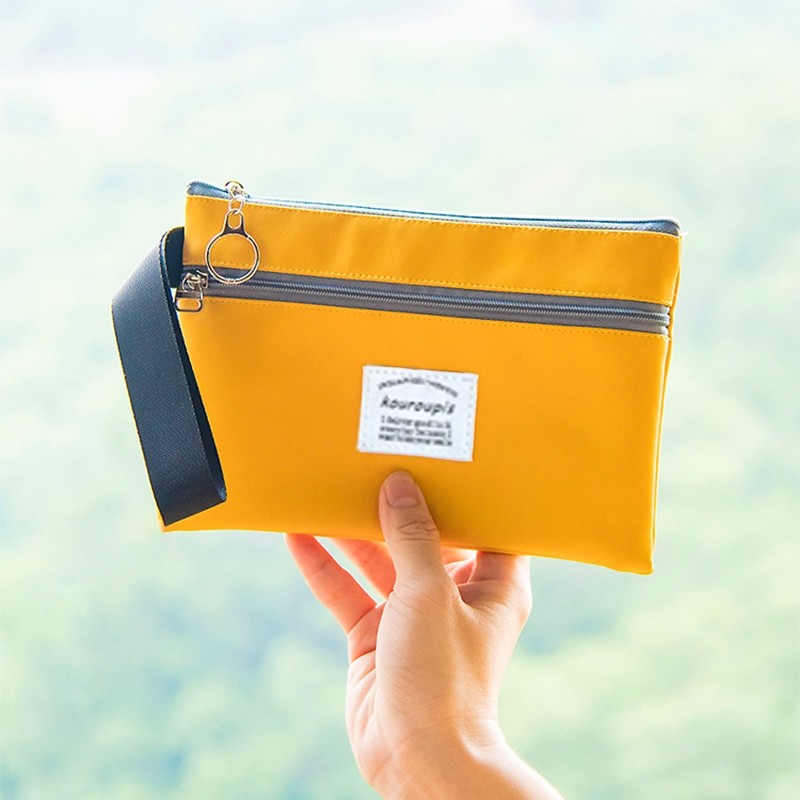 日系可爱零钱包简约华夫格收纳包女便携手腕包花朵mini小巧手提包