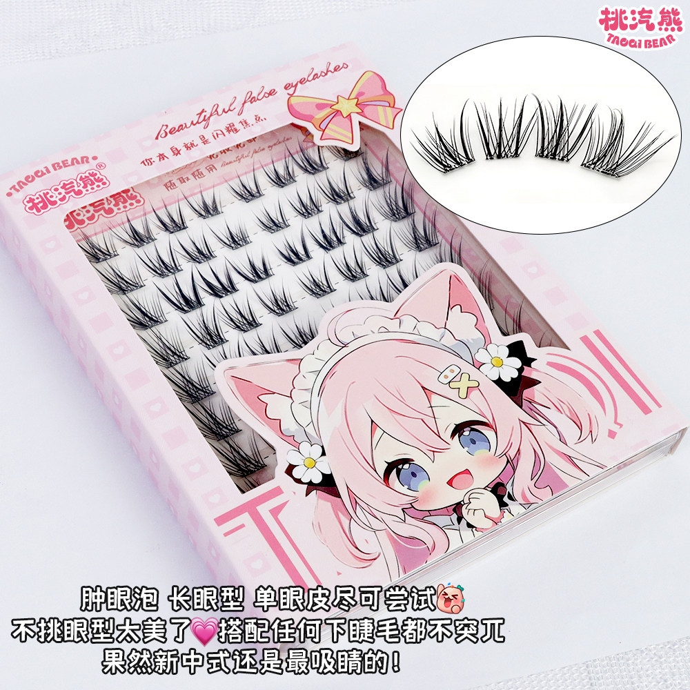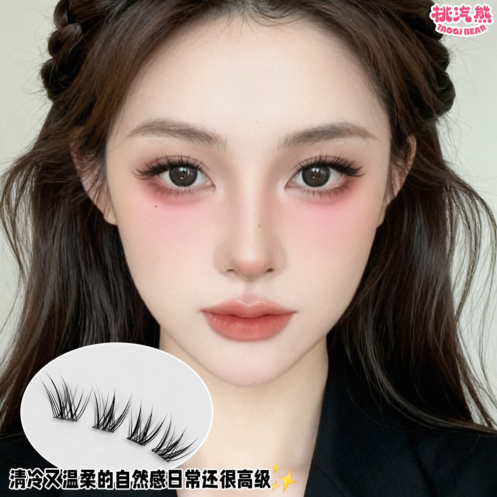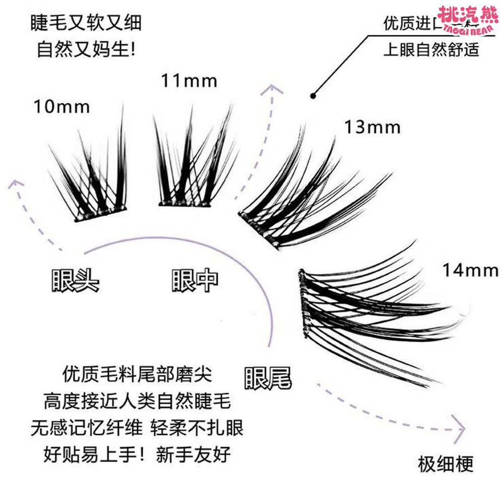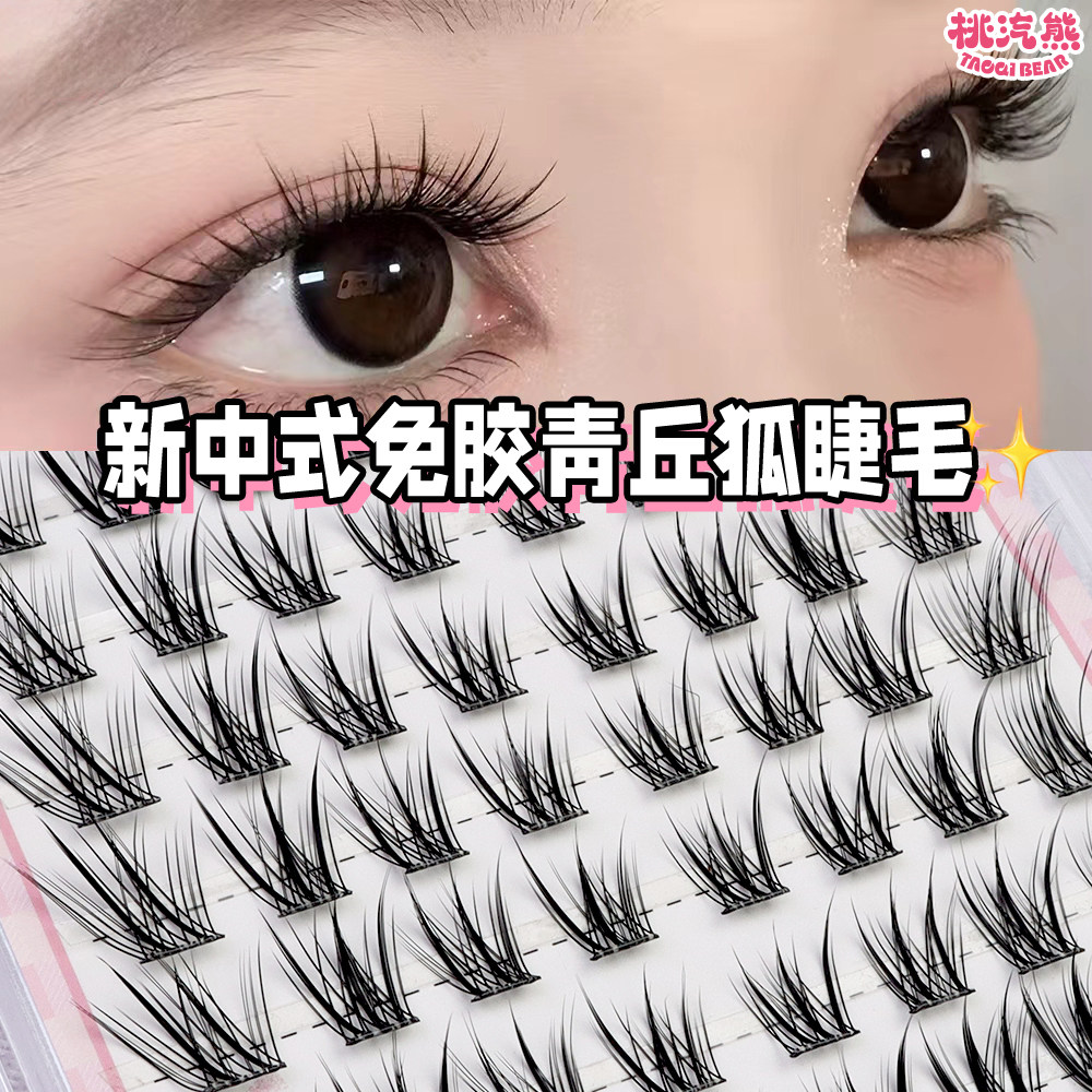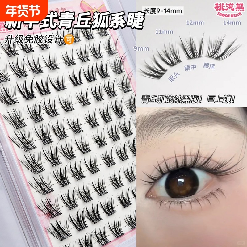 免胶青丘狐浓密斜飞假睫毛自然单簇仿真嫁接感妈生眼尾胶水尾部