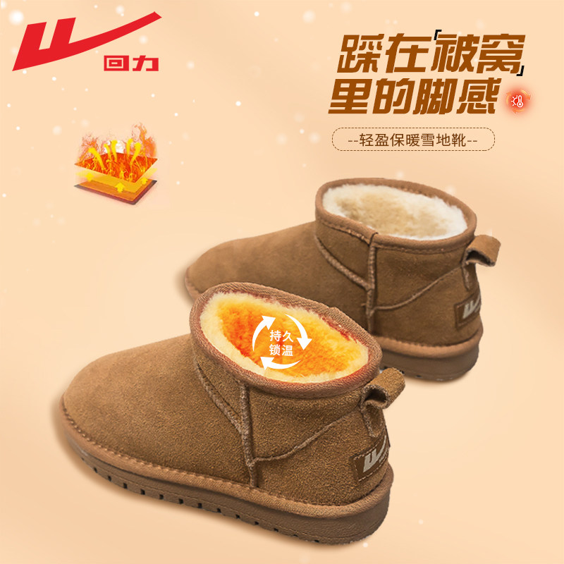 回力雪地靴男款2025新款冬季加绒加厚皮毛一体男士保暖东北棉鞋女