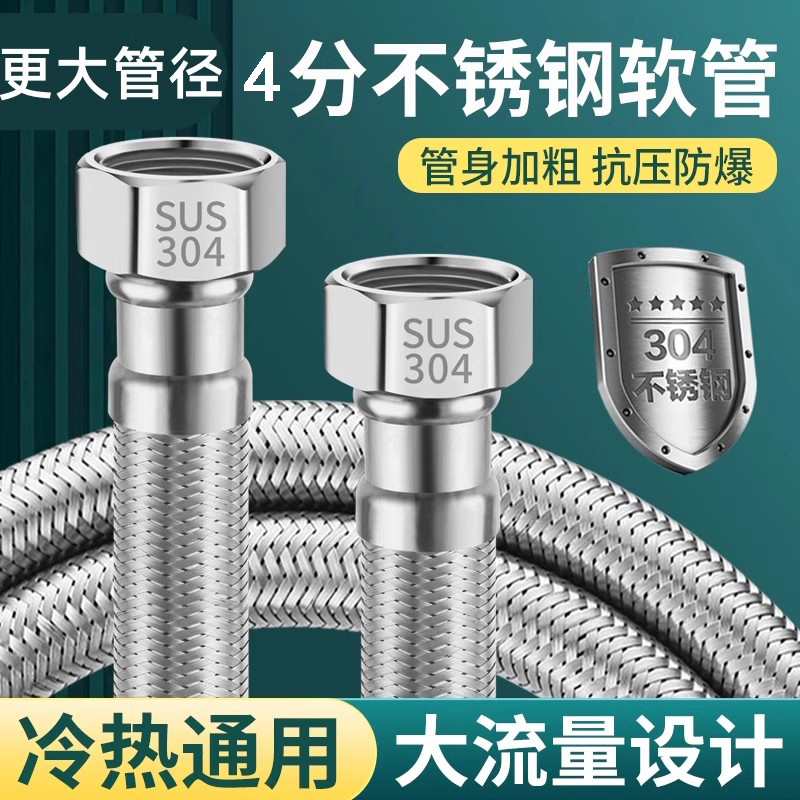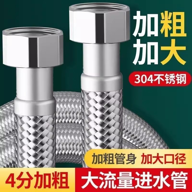 大流量304不锈钢编织4分加粗大口径防爆高压智能马桶热水器进水管