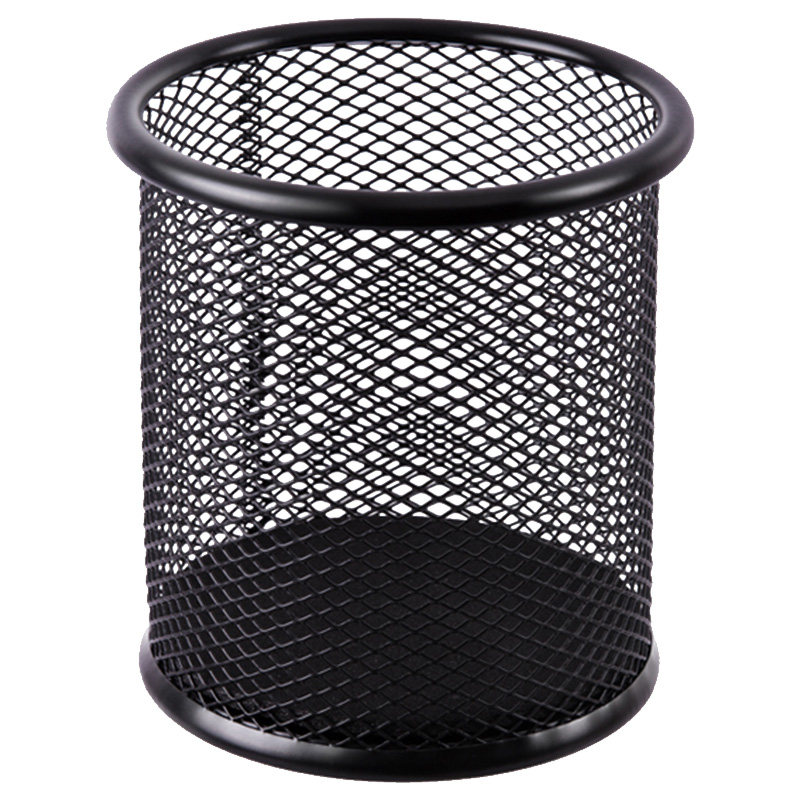 得力笔筒8903/9172一体圆形金属网纹笔插学生文具笔类收纳简约