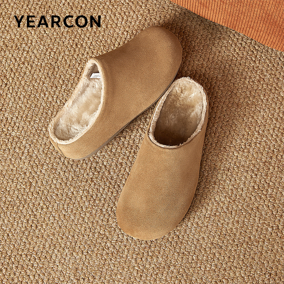 意尔康女鞋毛毛鞋包头加绒保暖穆勒鞋勃肯半拖一脚蹬软底懒人鞋