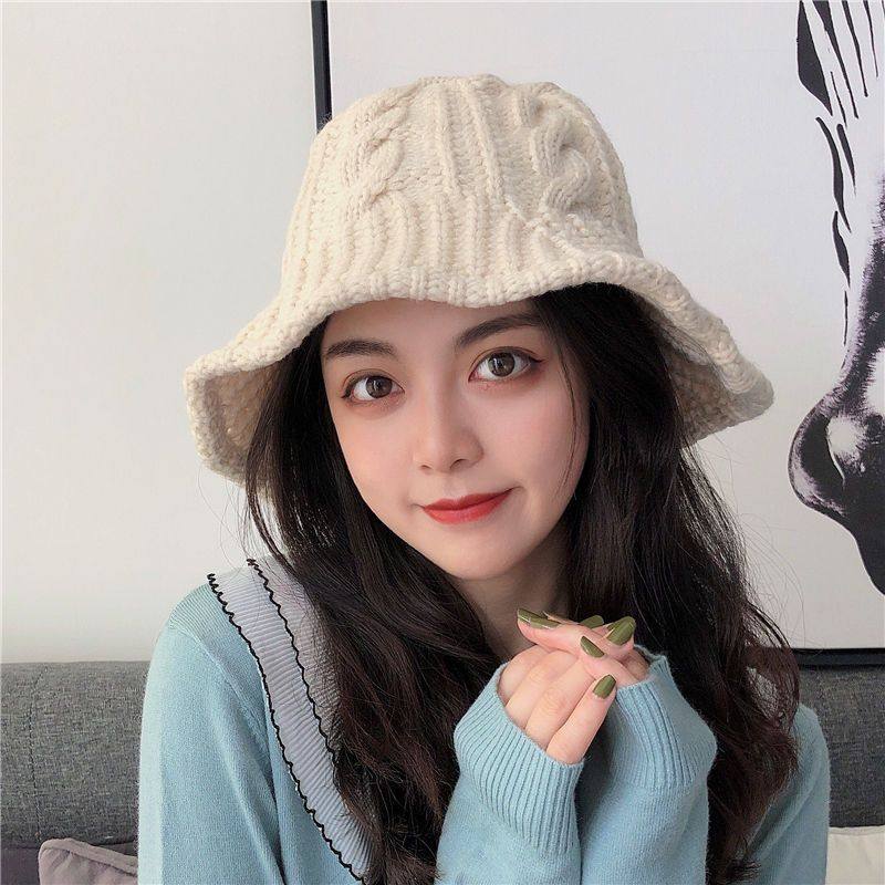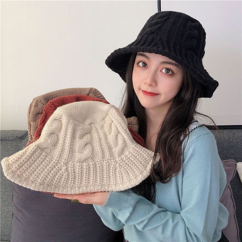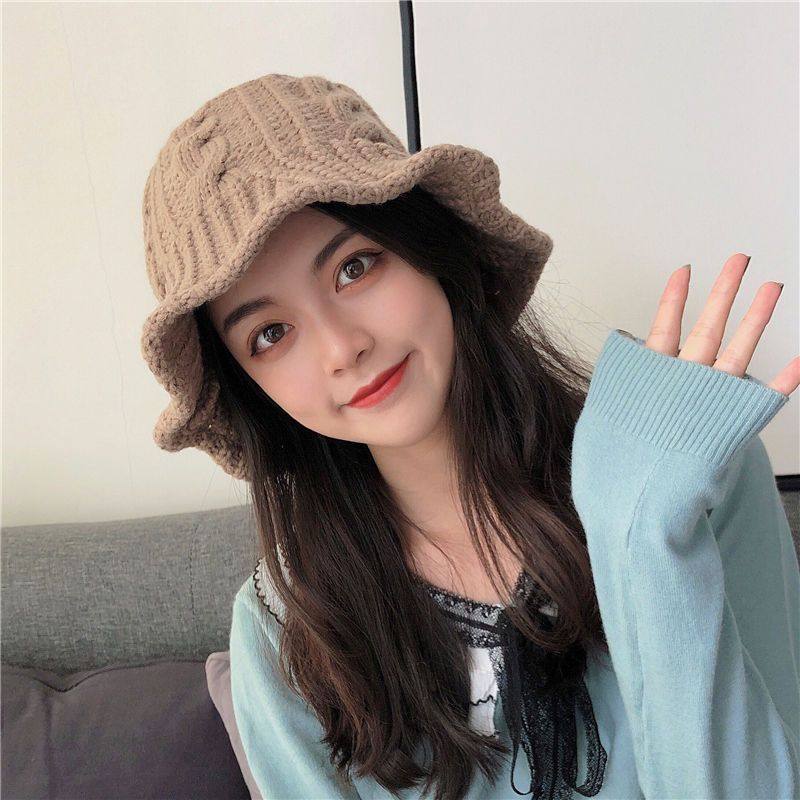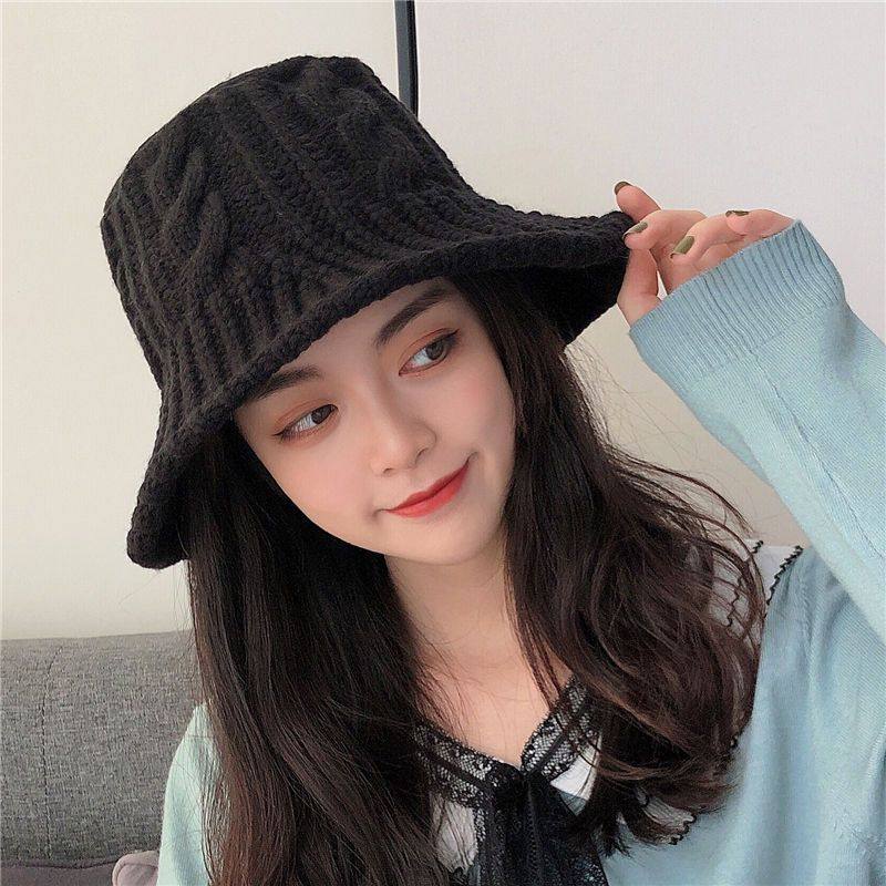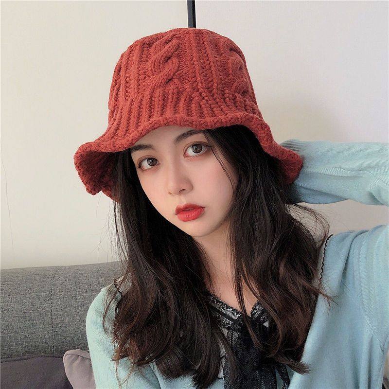 帽子女冬季女士保暖针织帽时尚新款渔夫帽学生盆帽毛线帽红色黑色