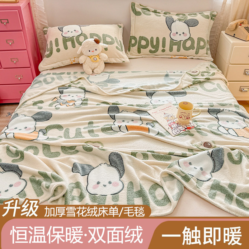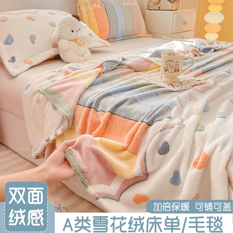 花花公子雪花绒毛毯床单单件加厚冬季珊瑚绒法兰绒办公室午睡毯子