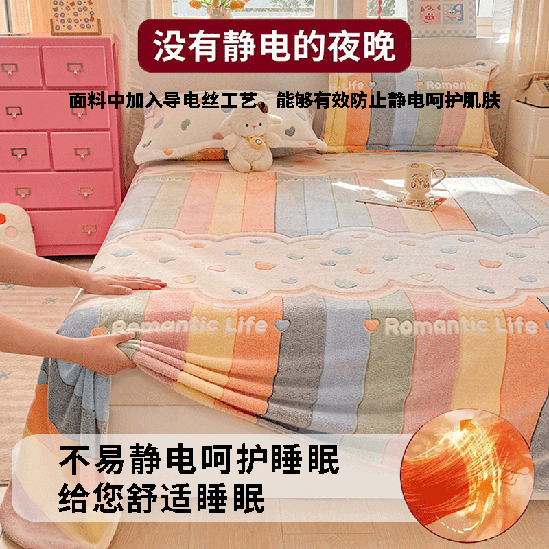 加厚磨毛纯棉床单单件100全棉学生宿舍被单人纯色秋冬枕套三件套a