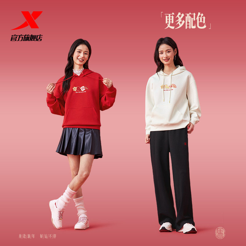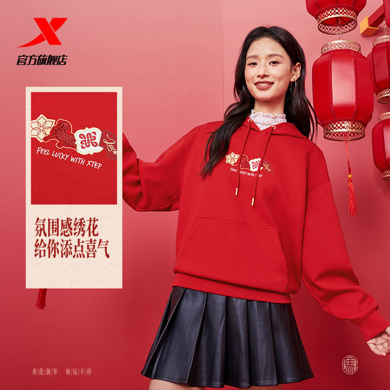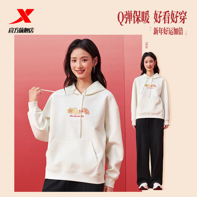 【商场同款】特步连帽卫衣女款2026春季新品休闲宽松套头长袖上衣