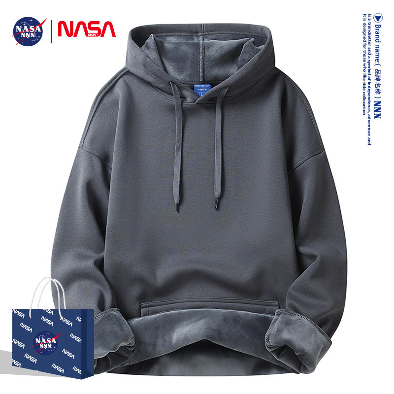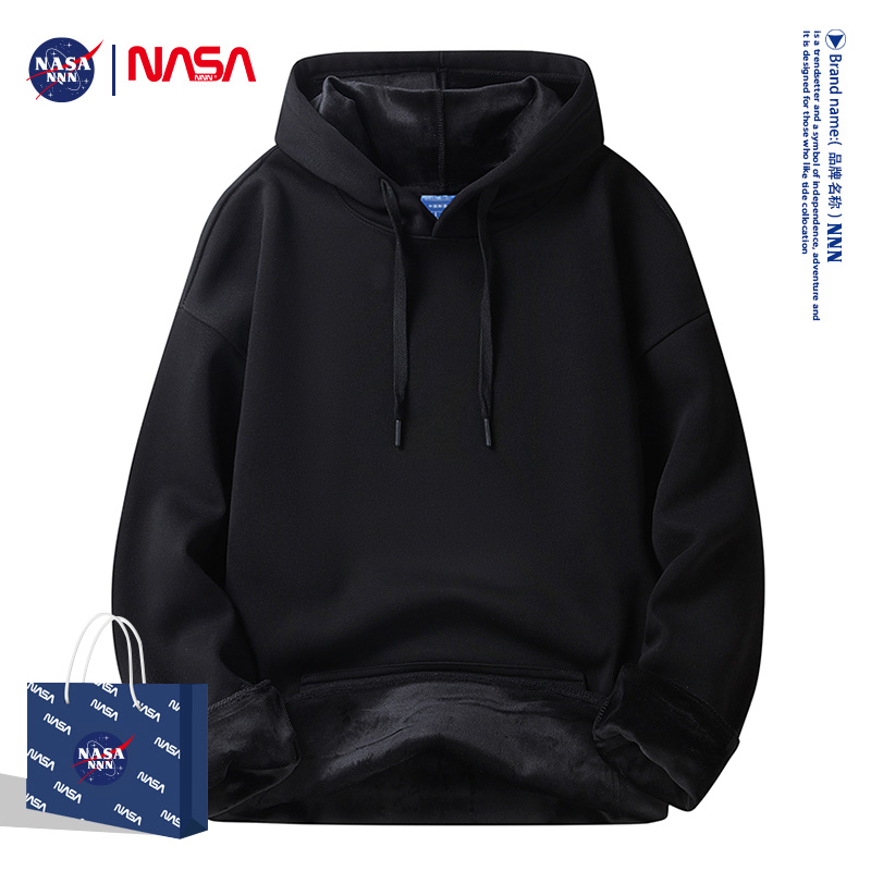NASA原创秋冬季男士卫衣宽松加绒加厚套头圆领打底衫长袖T恤大码