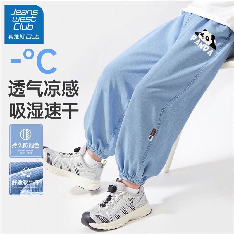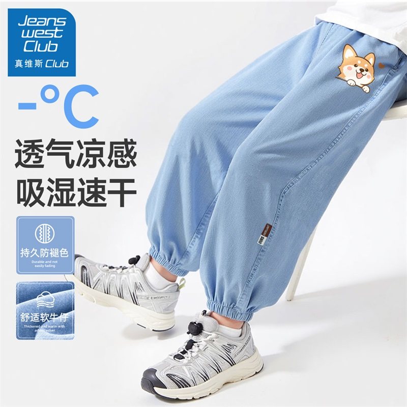 真维斯club男童裤子2025新款春装痞帅风牛仔裤儿童夏季束脚防蚊裤