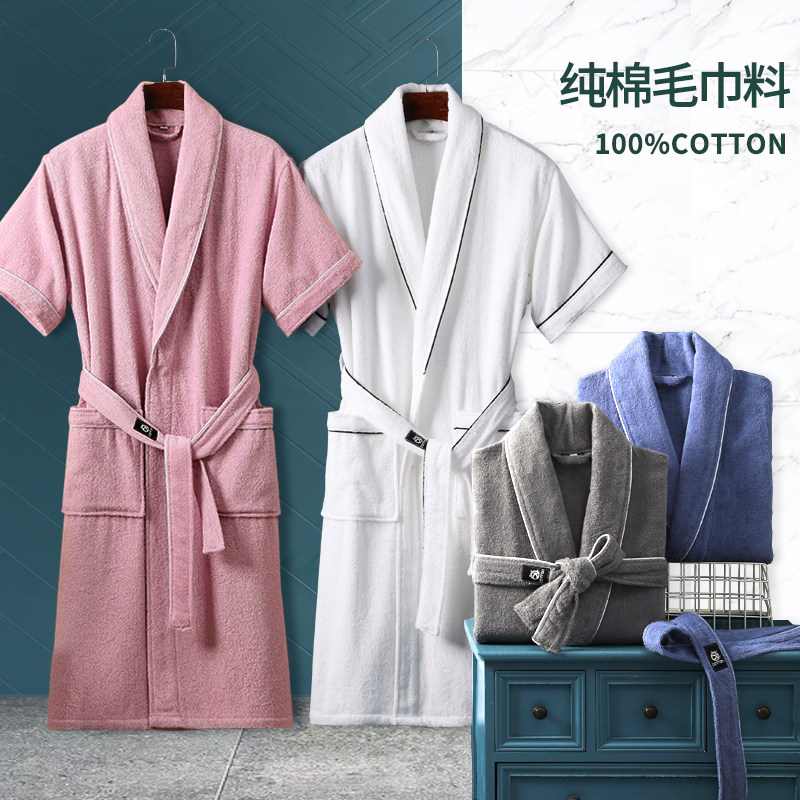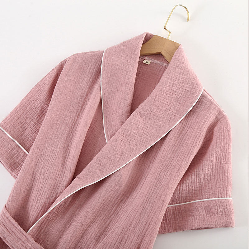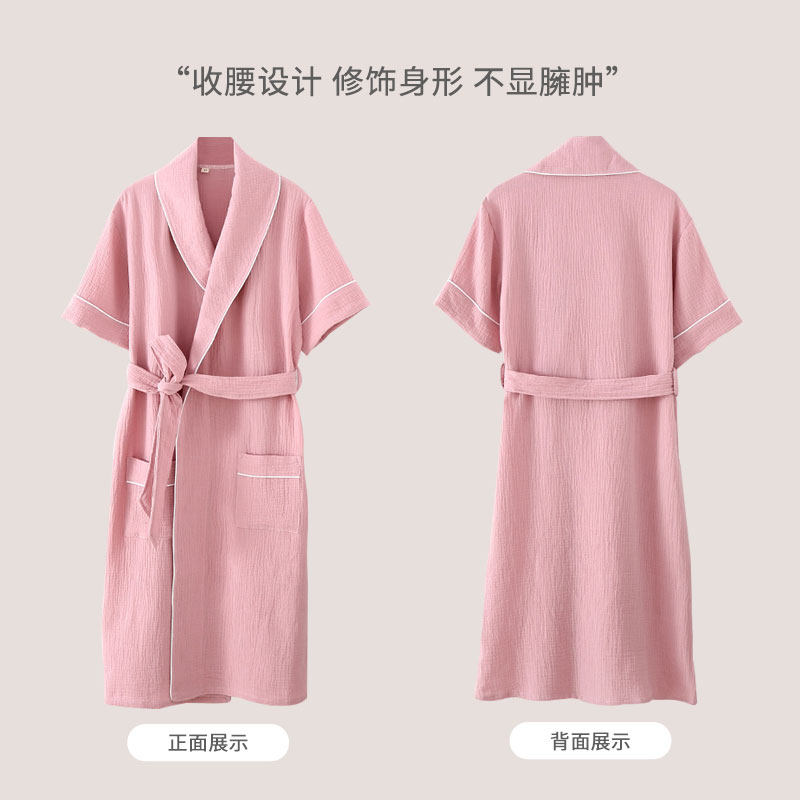 如奕纱布浴袍纯棉成人短袖女薄款棉纱夏季吸水速干浴衣男情侣睡袍