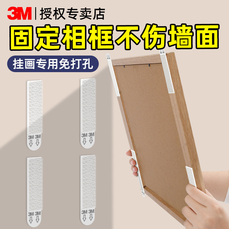 3M魔力扣免打孔不伤墙无痕胶强力粘挂钩粘胶墙面重物固定相框结婚婚纱照片专用双面胶不留痕家用粘胶贴免钉胶