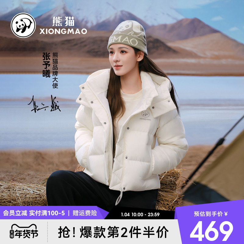 张予曦同款熊猫羽绒服女2025新款秋冬季短款可拆卸连帽户外保暖服