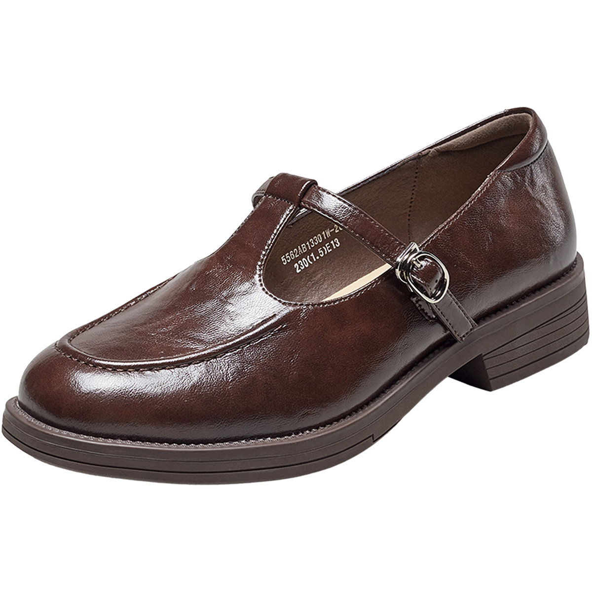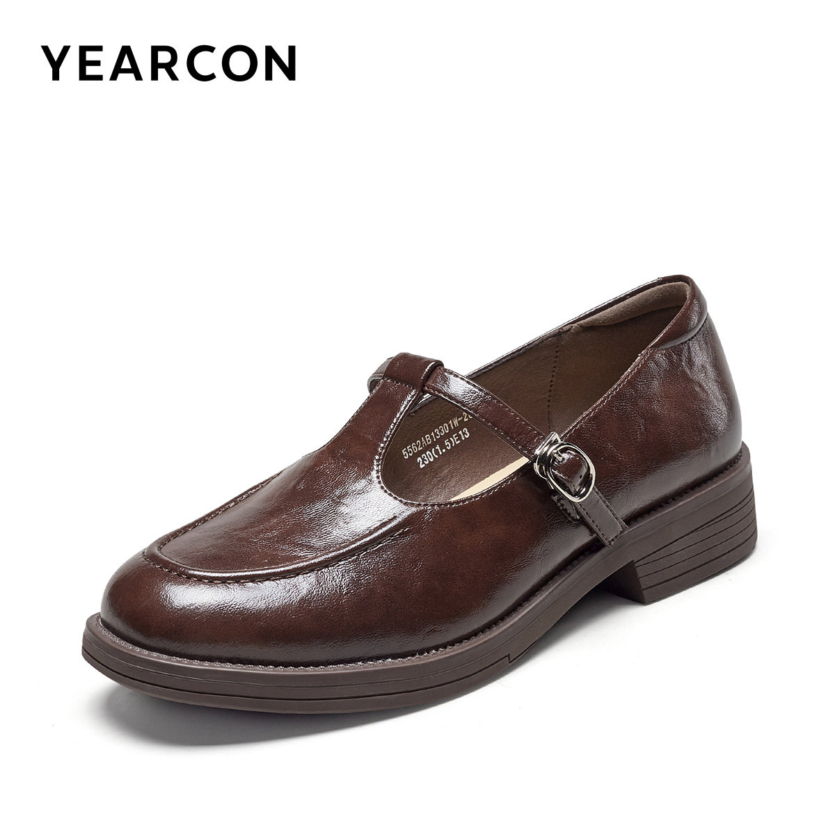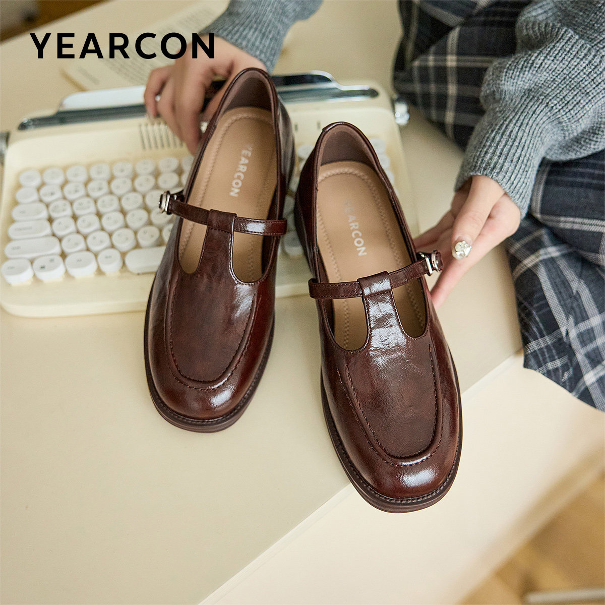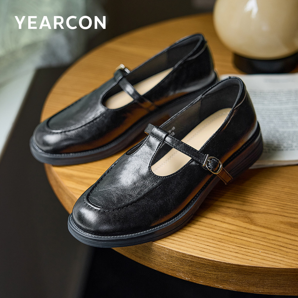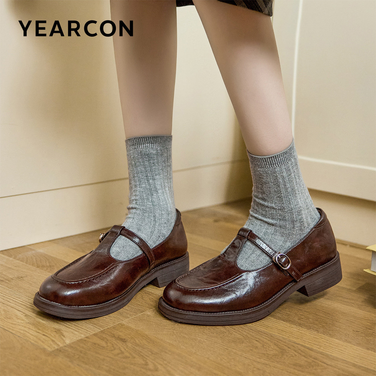 意尔康女鞋2025秋季学院风乐福鞋T型玛丽珍单鞋粗跟小皮鞋配裙子