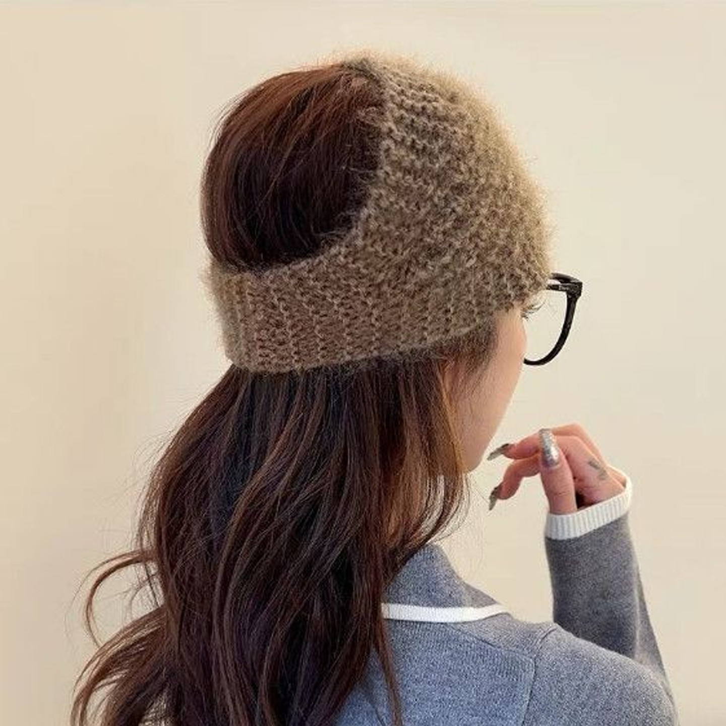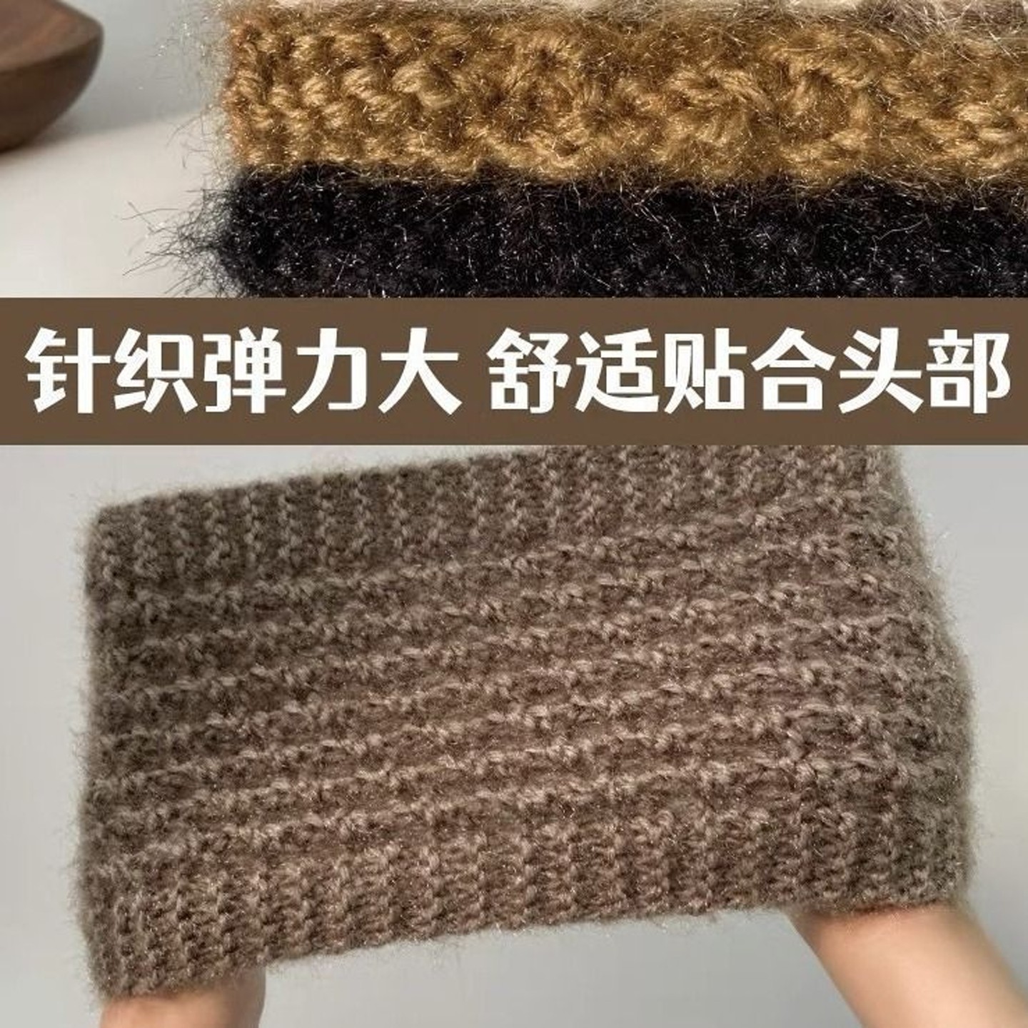 护耳保暖针织空顶帽子女冬天防寒毛线帽发带宽边包头头巾马尾漏顶