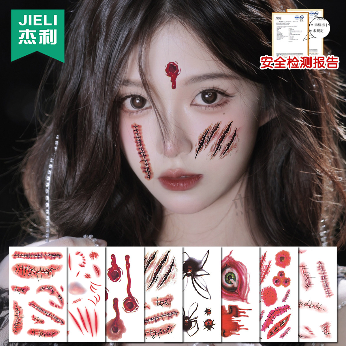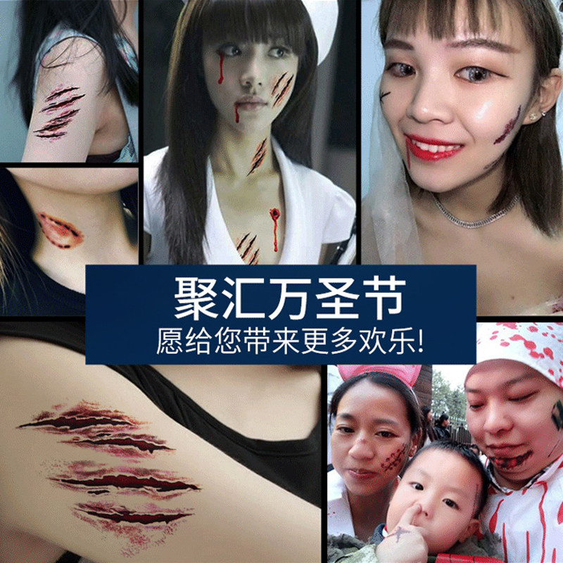 万圣节装饰cos脸贴装扮南瓜妆容贴纸女巫纹身贴恐怖伤疤仿真疤痕伤口脸部护士修女妆造蜘蛛网女孩化妆小恶魔