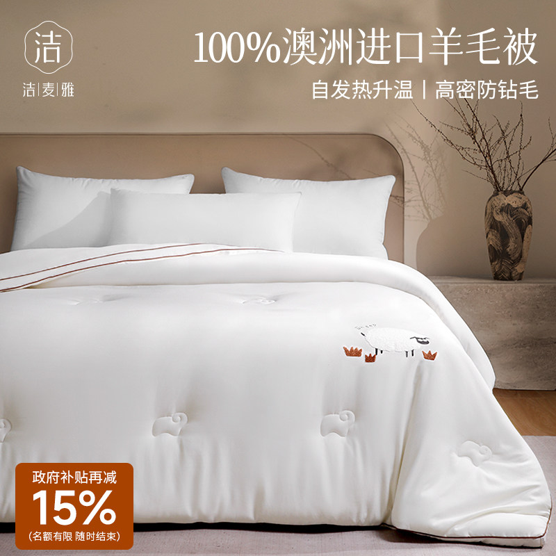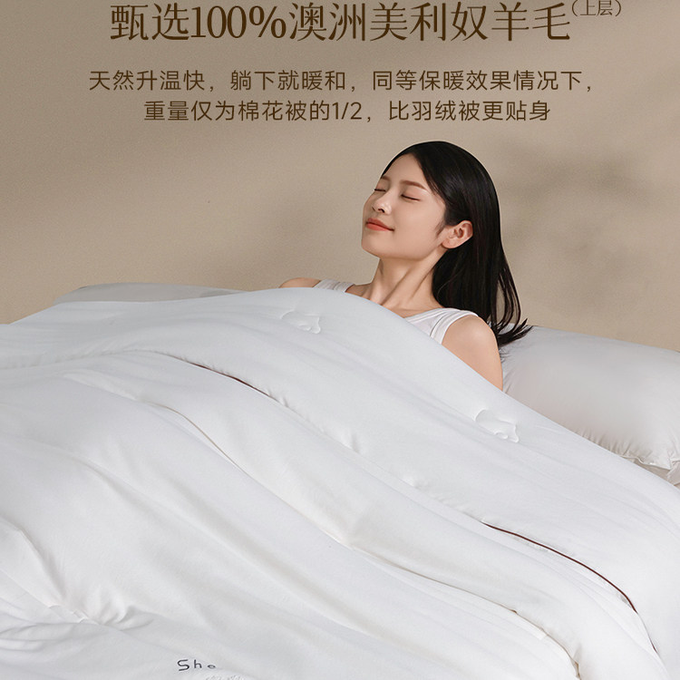 水星家纺澳洲羊毛被子A类抑菌羊毛四季被冬被加厚冬被秋冬床品