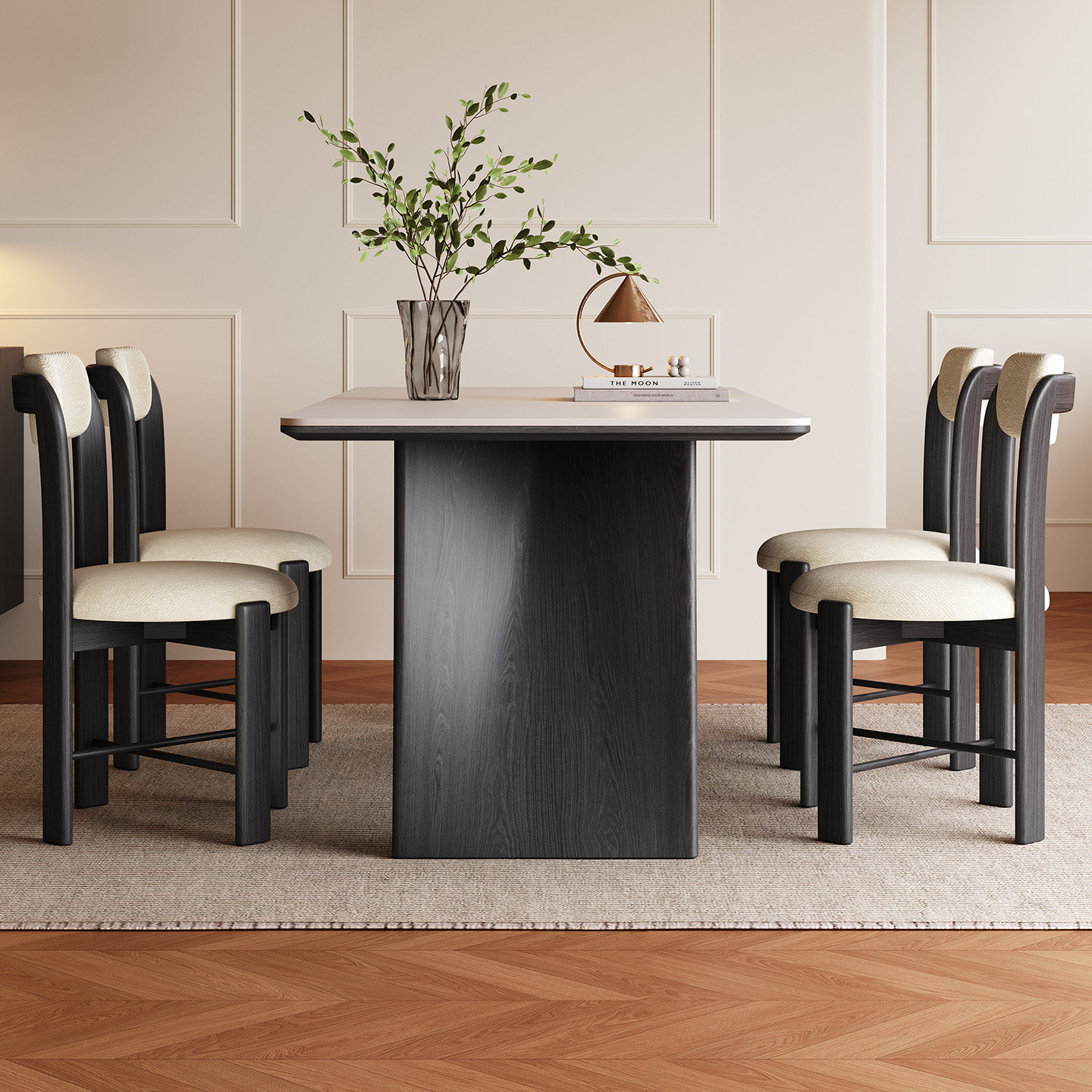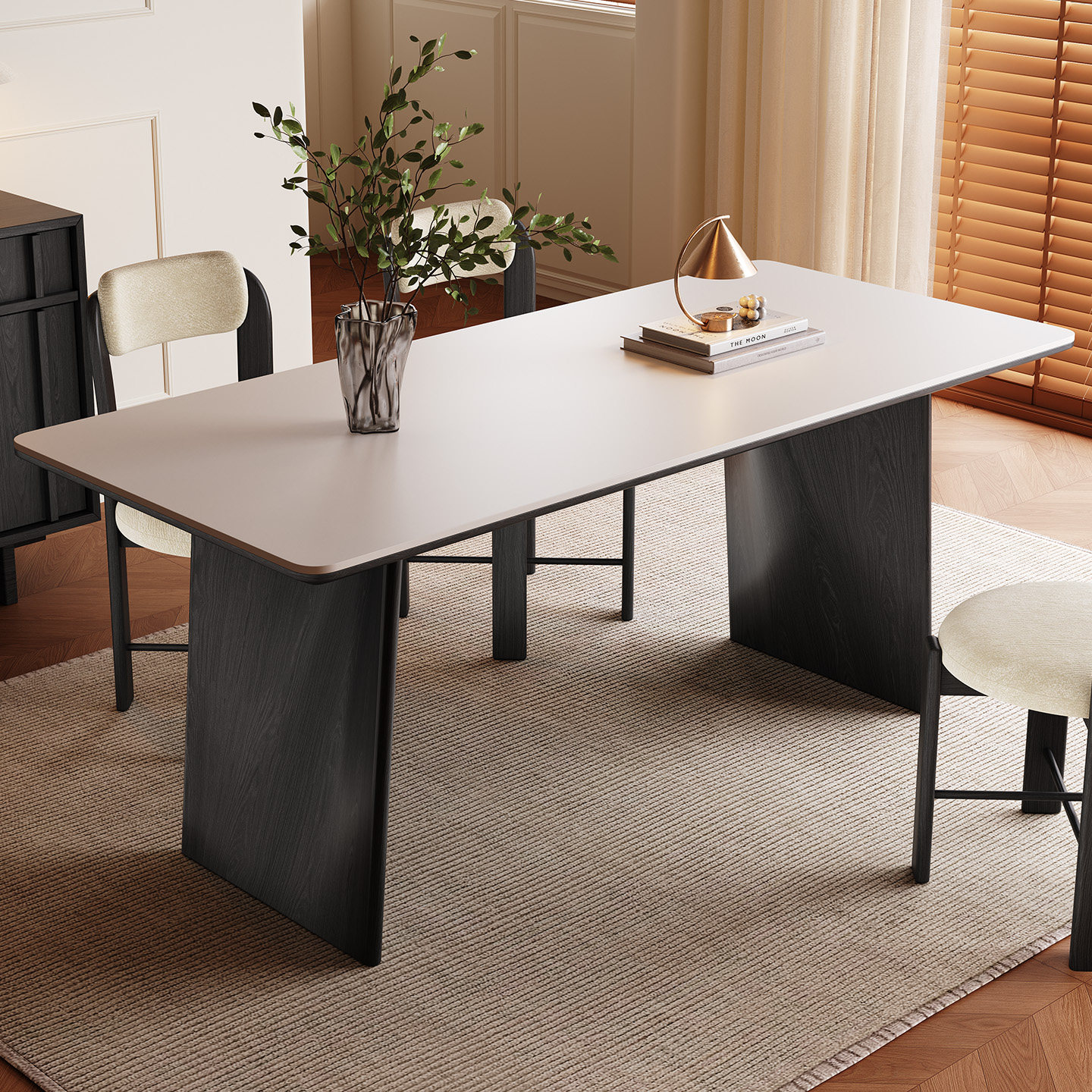 实木餐桌小户型家用2025新款饭桌白蜡木法式复古哑光纯白岩板餐桌