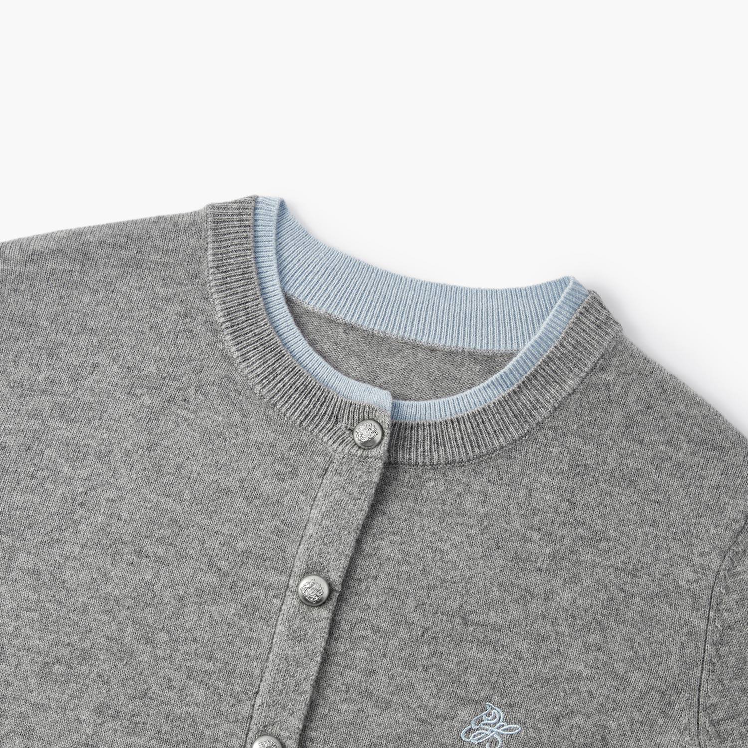 爱居兔休闲简约撞色针织衫2025年冬季新款女灰长袖毛衣