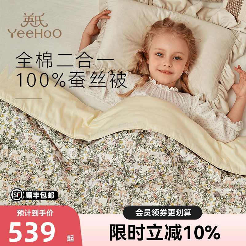 英氏A类婴儿100%蚕丝被中长丝60S纯棉被子母被二合一四季通用