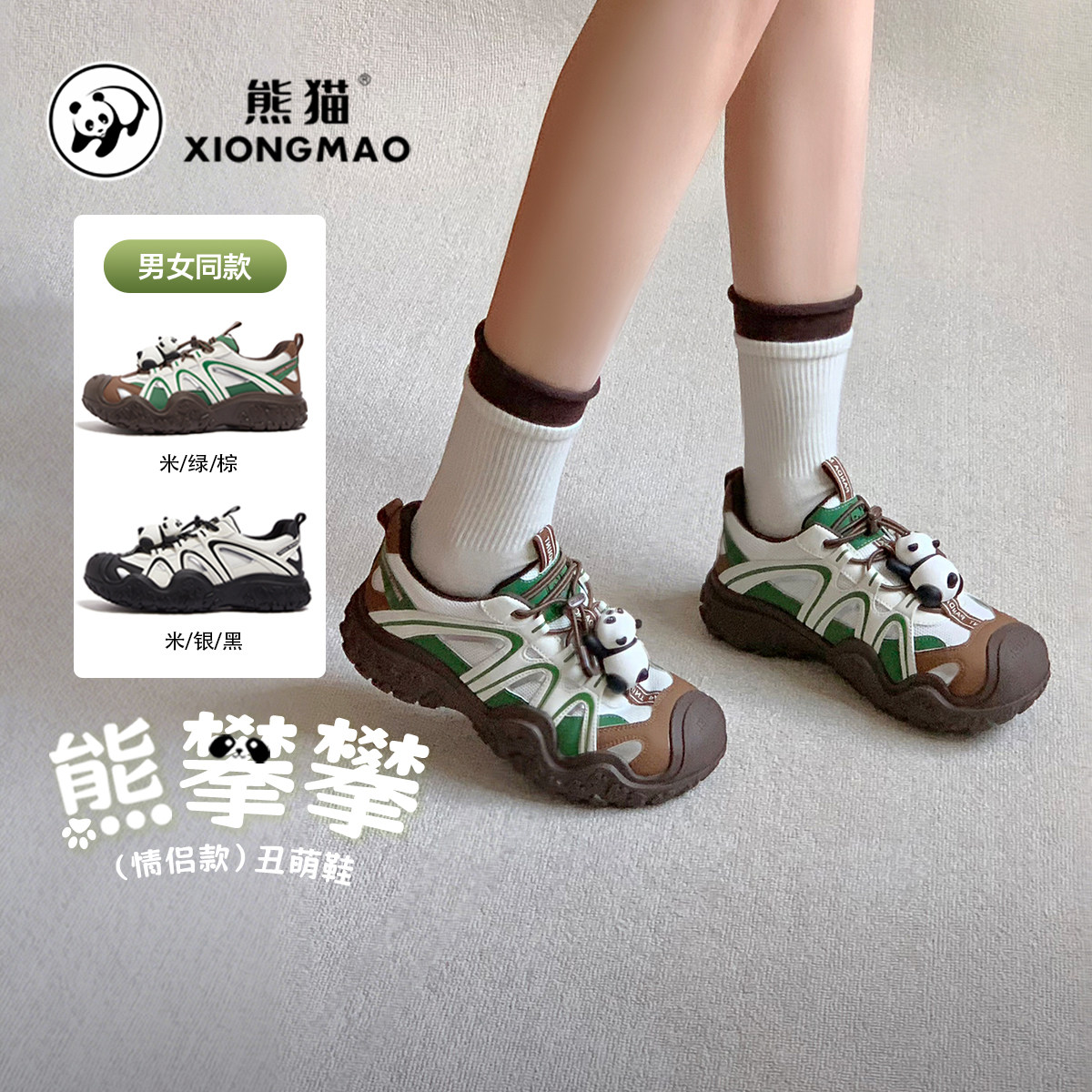 骆驼熊猫户外登山鞋女新款山系休闲鞋增高丑萌鞋男防滑徒步运动鞋