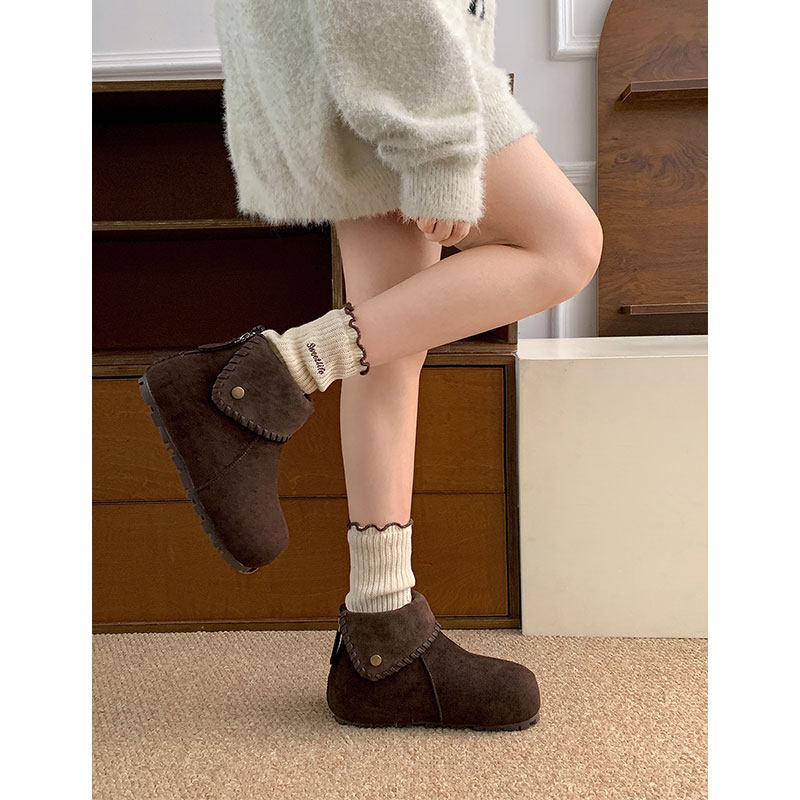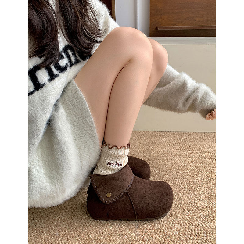 低帮厚底雪地靴女2025新款冬季懒人一脚蹬毛毛棉鞋加绒加厚女鞋子