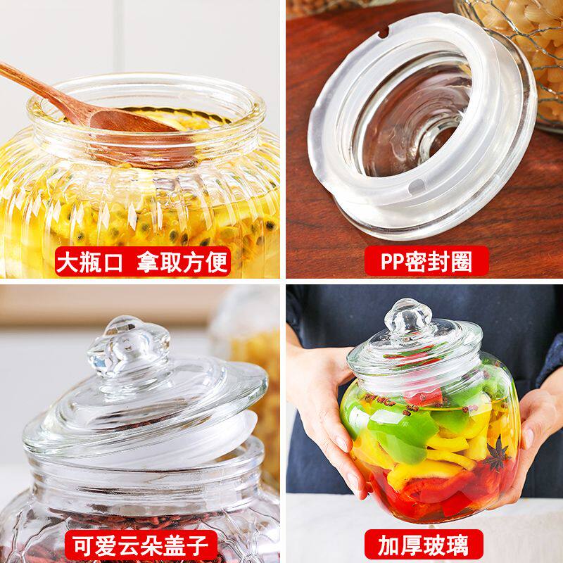 玻璃储物罐家用厨房食品收纳盒无铅透明蜂蜜糖果茶叶密封玻璃瓶子