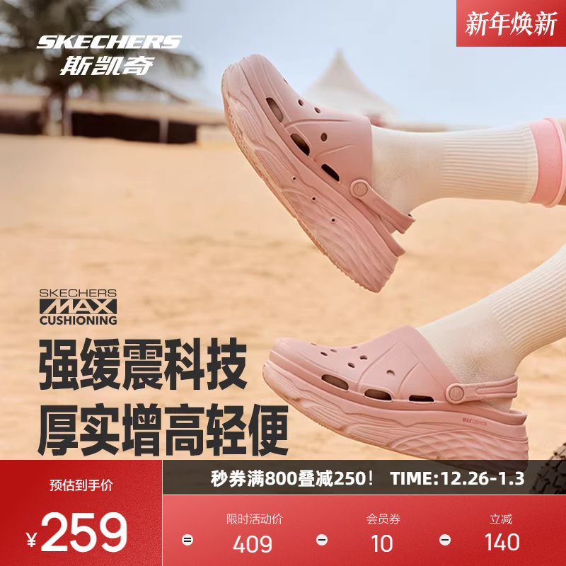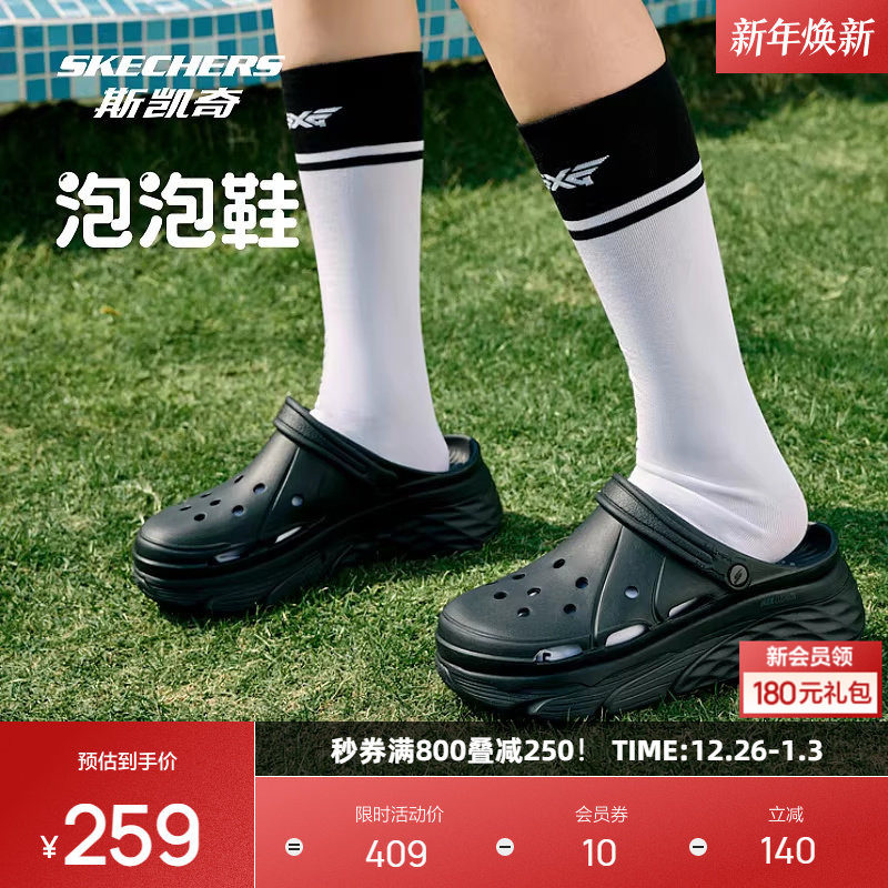斯凯奇洞洞鞋女款舒适透气运动拖鞋外穿厚底踩屎感凉鞋沙滩鞋