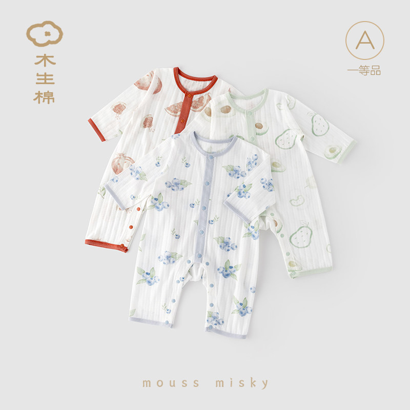 木生棉宝宝长袖连体衣夏季薄款婴儿纯棉可爱哈衣透气爬服睡衣夏装