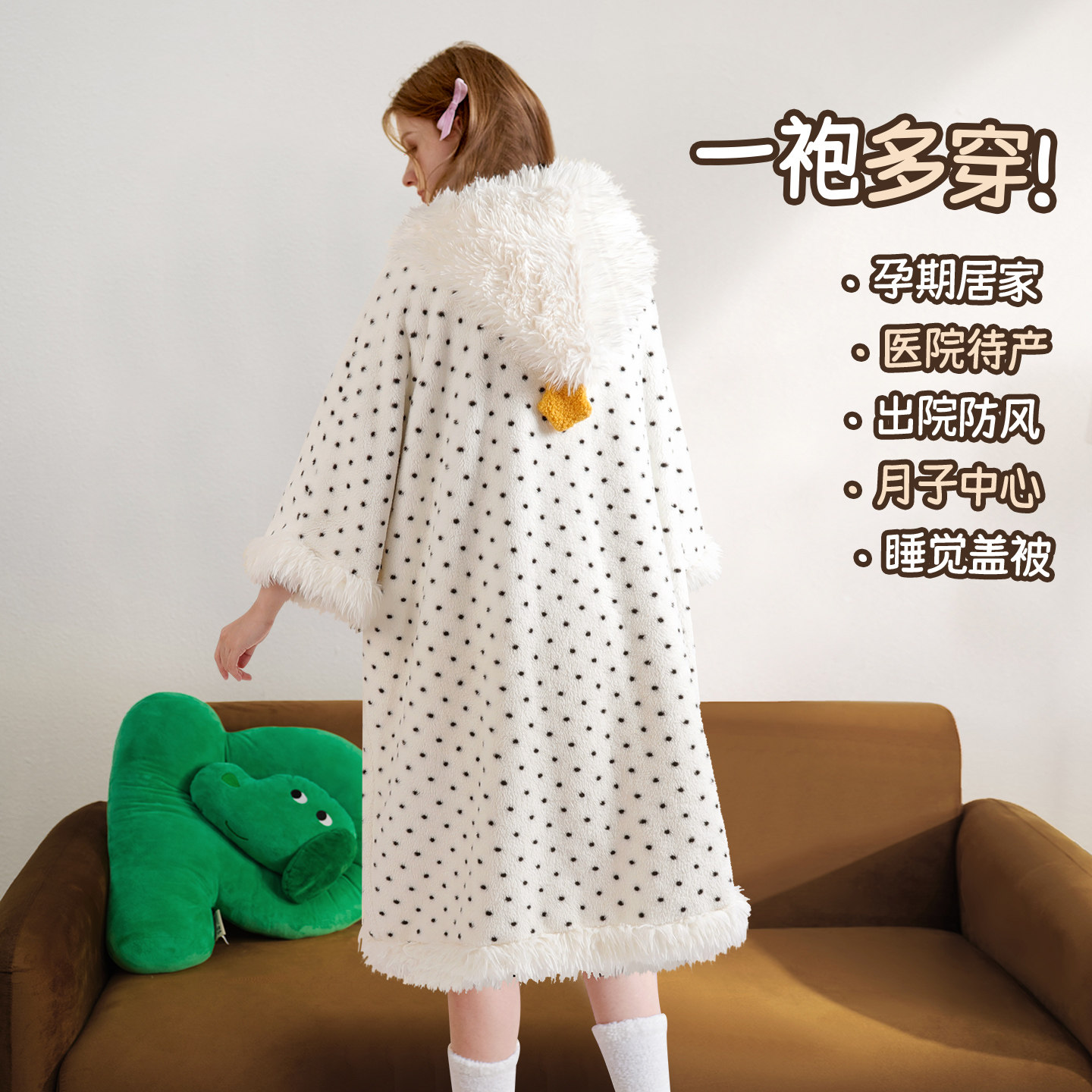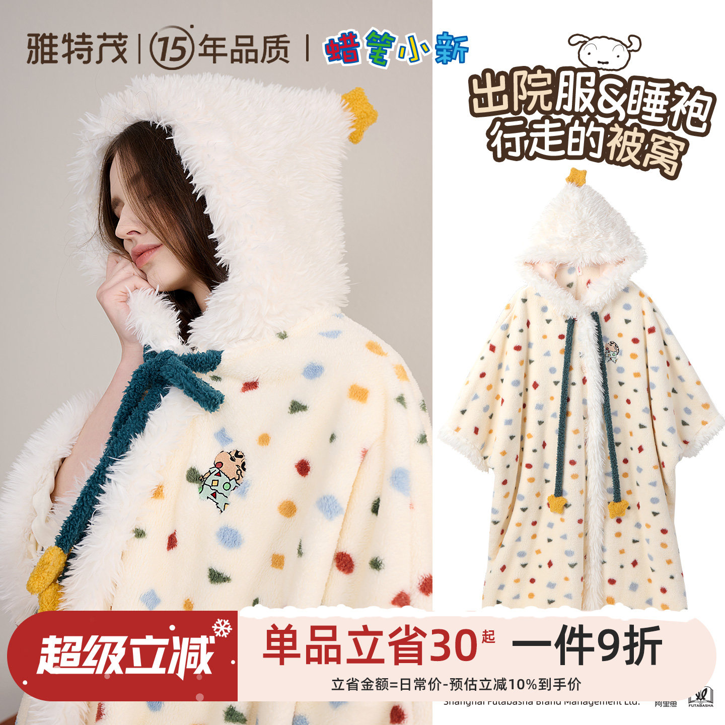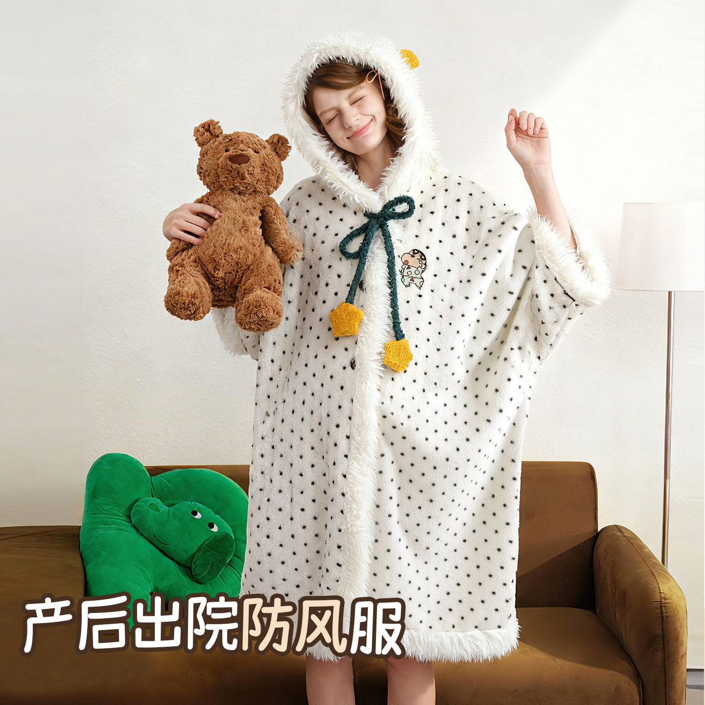 蜡笔小新斗篷丨雅特茂加绒加厚孕妇产后出院服睡袍连帽喂奶披肩女