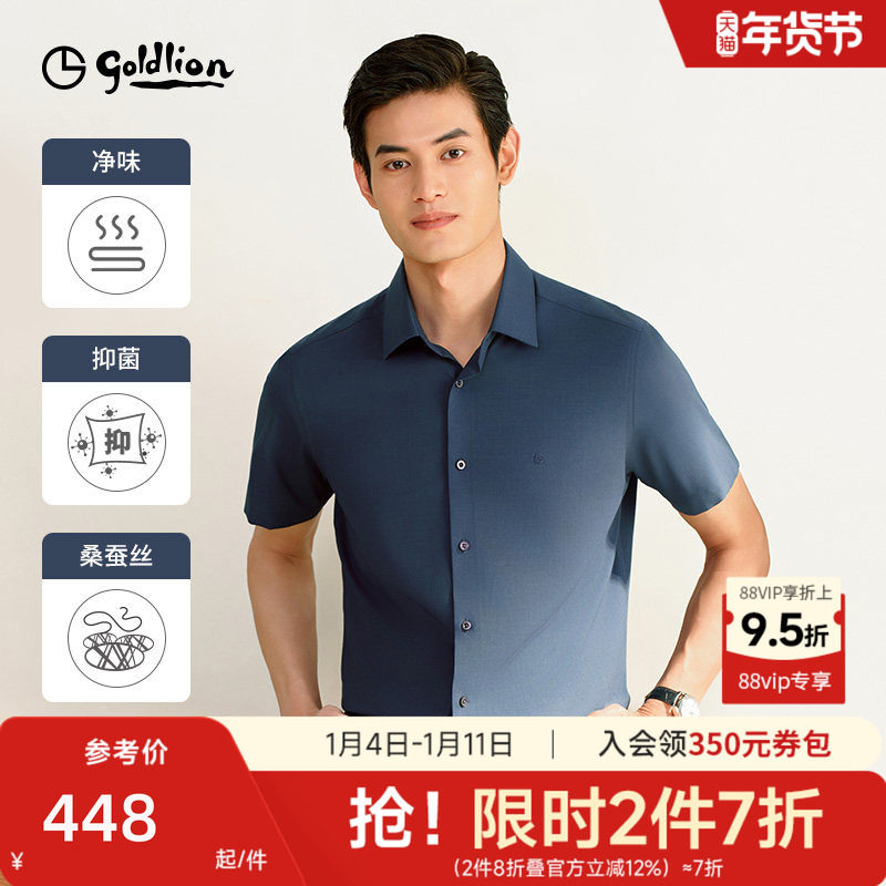 【桑蚕丝衬衫】金利来春夏新款男士正装衬衫抑菌纯色商务短袖衬衣