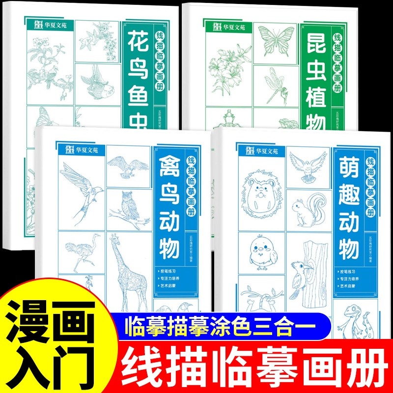线描临摹画册漫画入门手绘描摹本动漫人物线稿描绘儿童描画美少女古风人物绘画画画基础自学教程指南白描素描临摹卡通素描书教材W