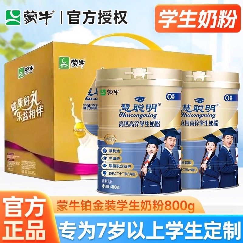 蒙牛高钙高锌学生奶粉800g铂金装青少年儿童营养早餐大成牛奶粉长