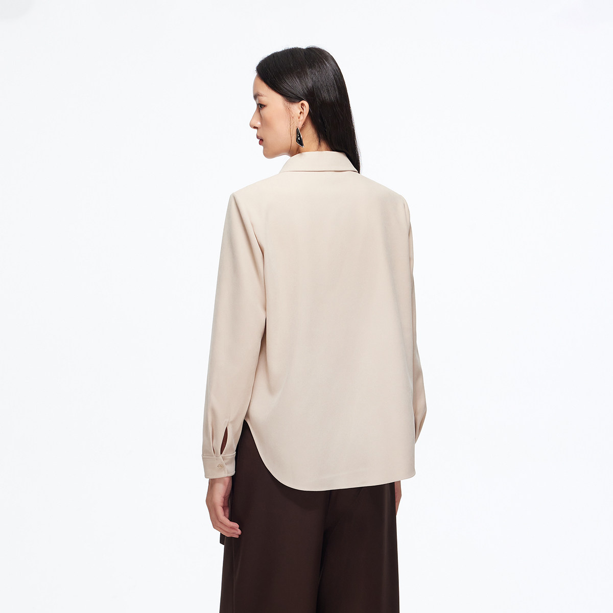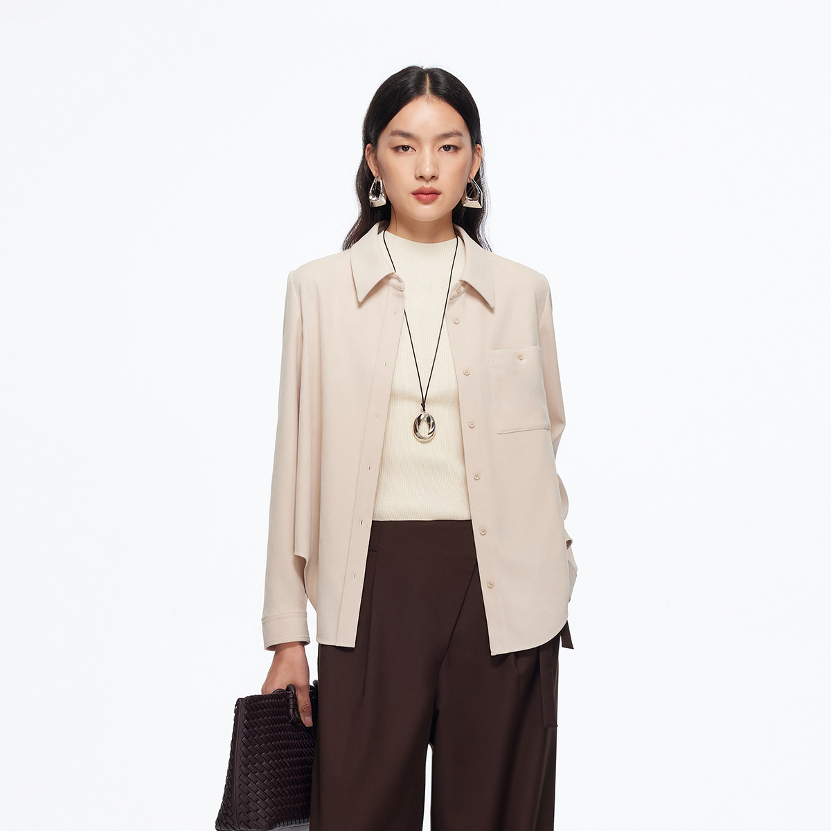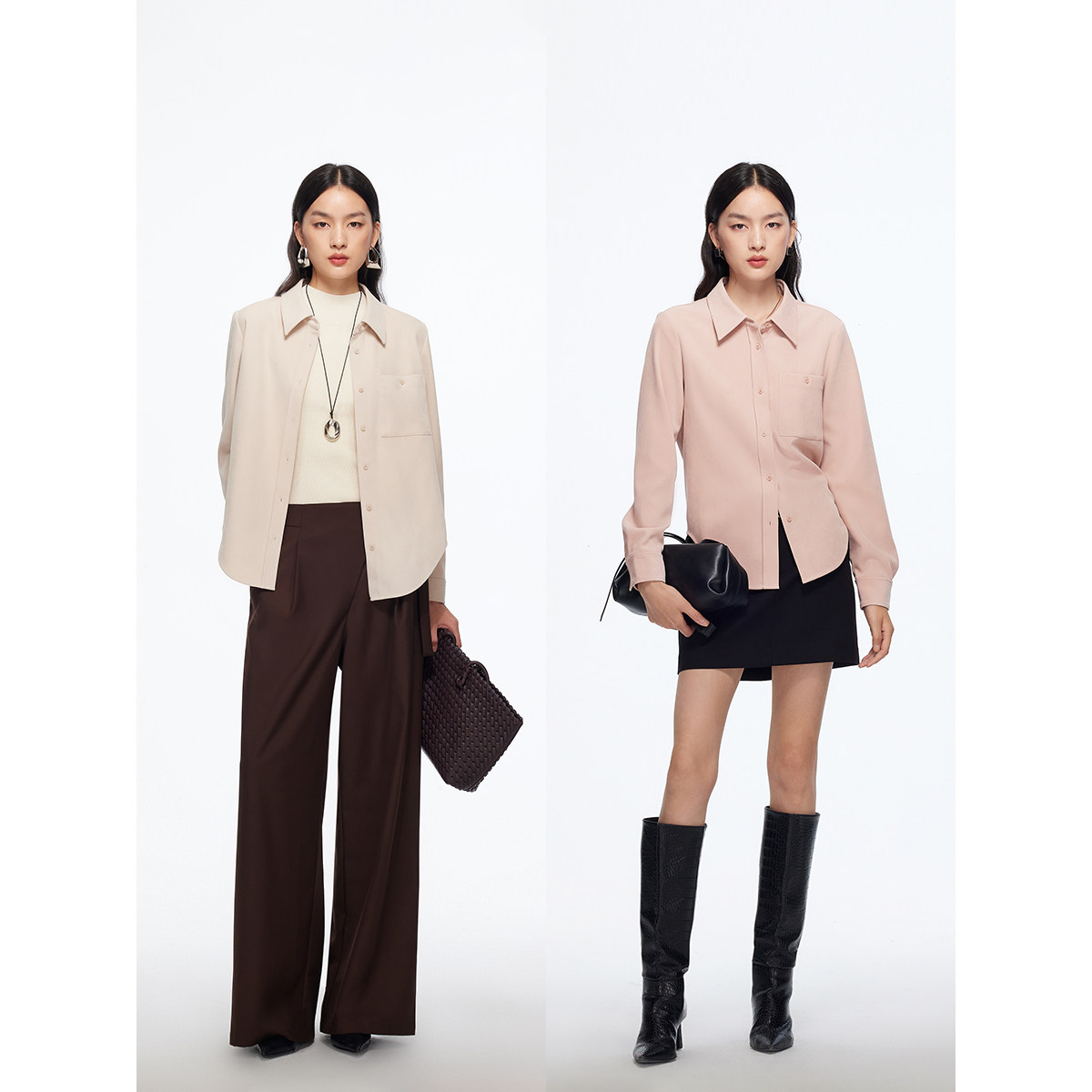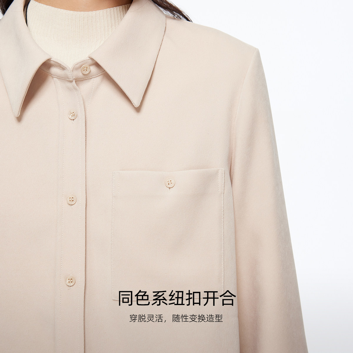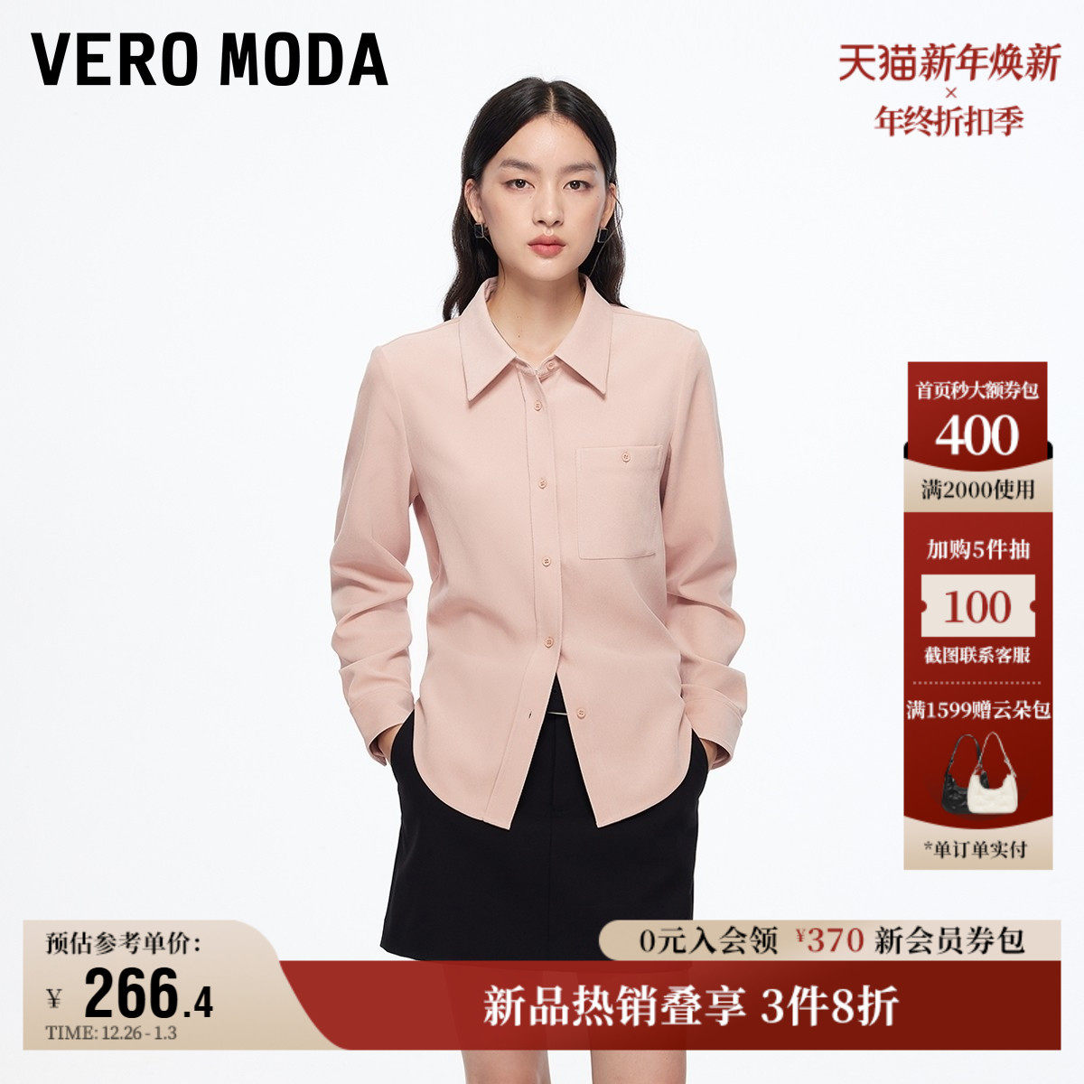 Vero Moda奥莱衬衫女2025秋冬新款纯色口袋尖形翻领显瘦上衣高级