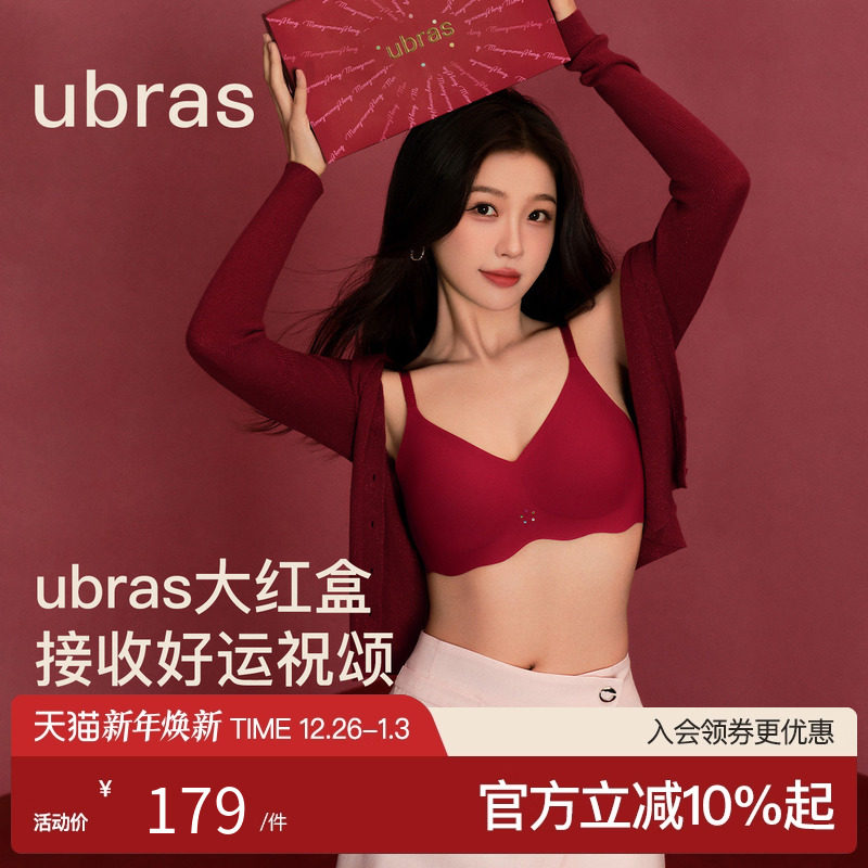 虞书欣同款ubras大红盒本命年马年无尺码无痕背心文胸内衣套装女