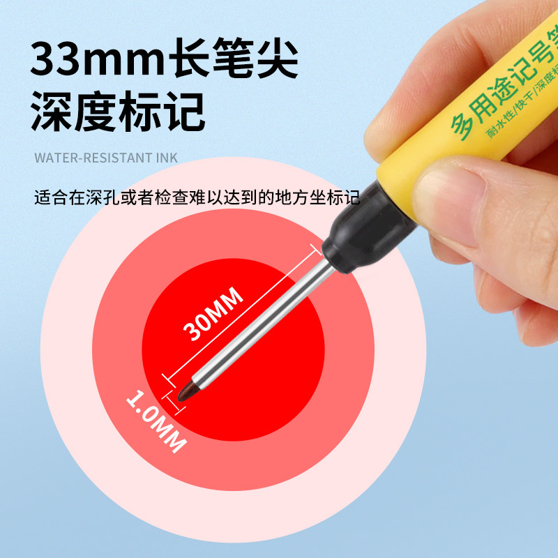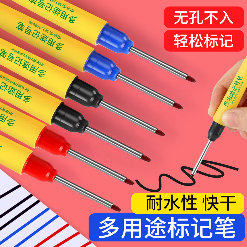 长头记号笔油性木工专用瓷砖特殊用途工地长嘴黑色深孔划线细加长画线计号笔脱帽不干板材打孔防水防油不掉色