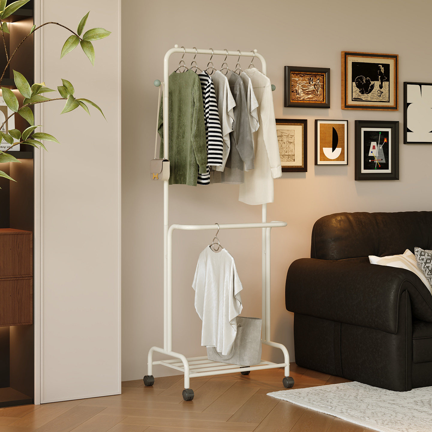 衣架卧室落地家用衣帽架铁艺晾晒衣架子高级室内立式可移动挂衣架