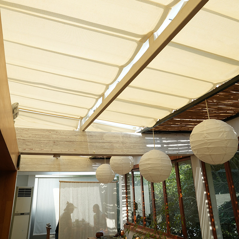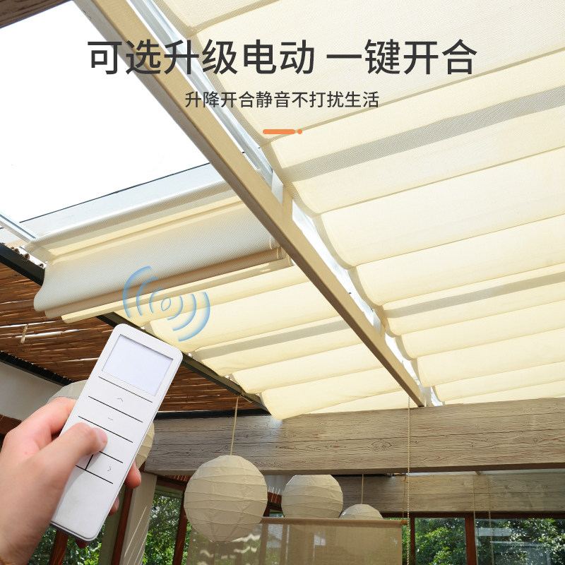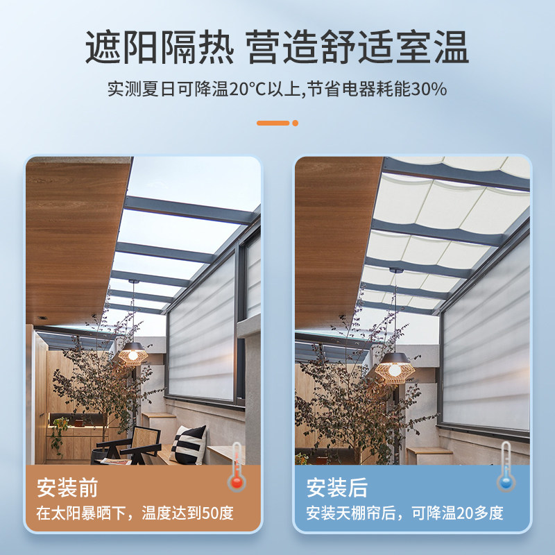 贵品天棚帘定制阳光房遮阳顶帘手动电动隔热遮光阳台天窗玻璃房