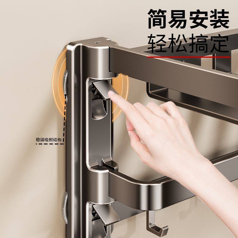 吸盘毛巾架卫生间免打孔浴室置物架厕所浴巾架子墙上壁挂收纳架