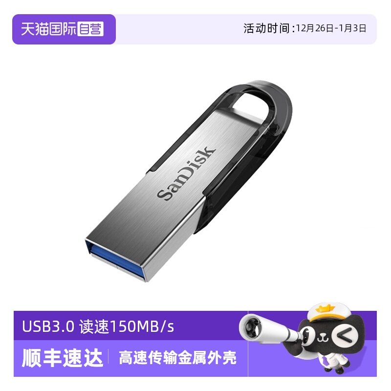 【自营】闪迪32g/64g/128g优盘USB3.0闪存盘CZ73车载加密U盘金属