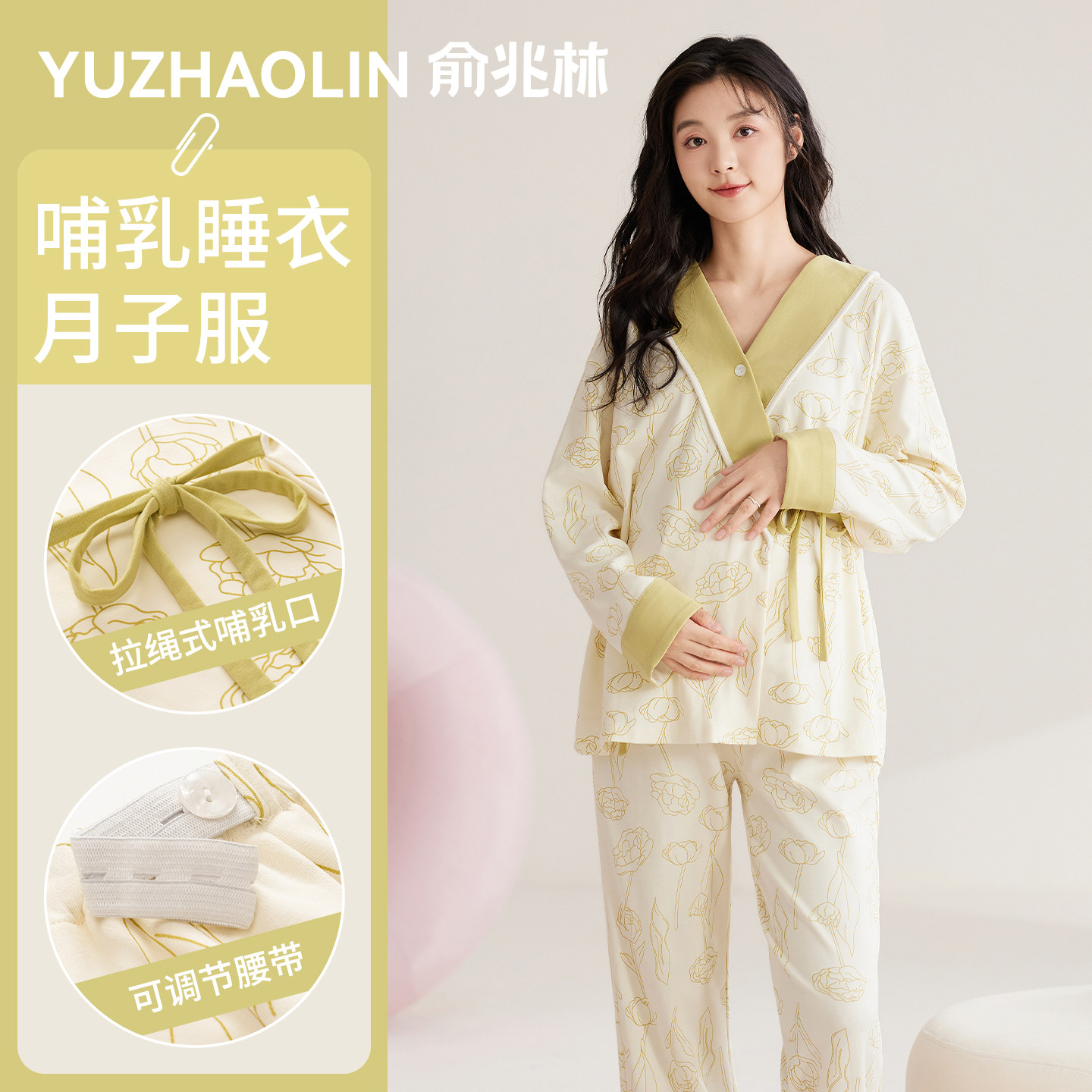 月子服哺乳睡衣春夏秋薄款2026新款孕妇带胸垫一体产妇家居服套装