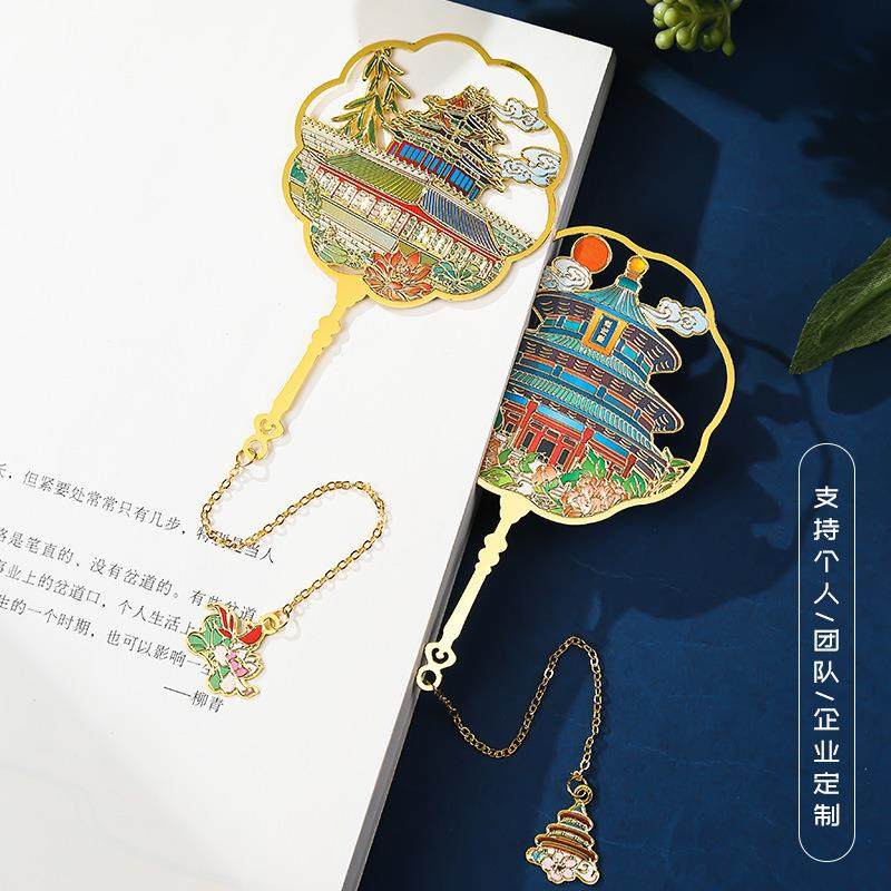 新款直销北京角楼旅游景区金属团扇书签文创古典中国风纪念品礼物