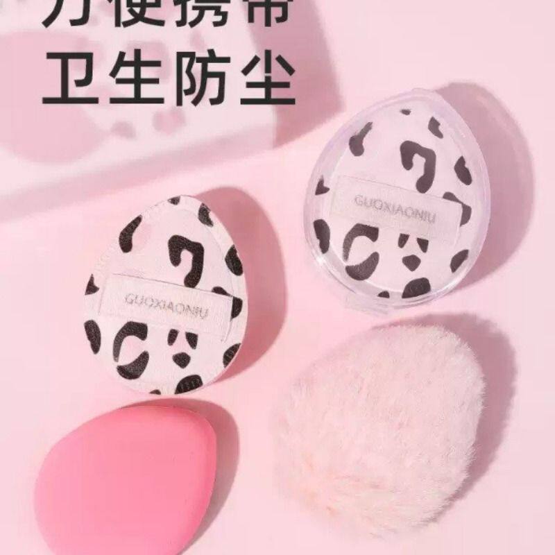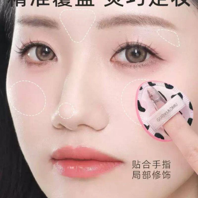 豹纹拇指小粉扑气垫散粉扑尖头腮红遮瑕粉底液专用收纳盒手指