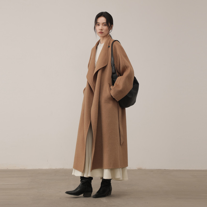 AIRIQI商场同款25冬新款廓形翻领含腰带羊毛双面呢大衣AH54DY090