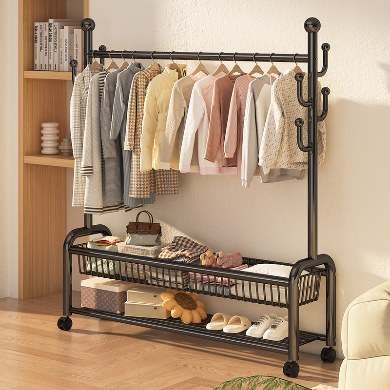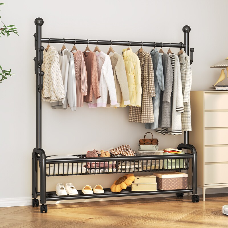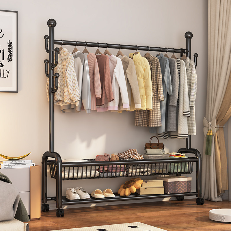 挂衣架落地卧室家用房间室内双杆晾晒衣服架子可移动多功能衣帽架