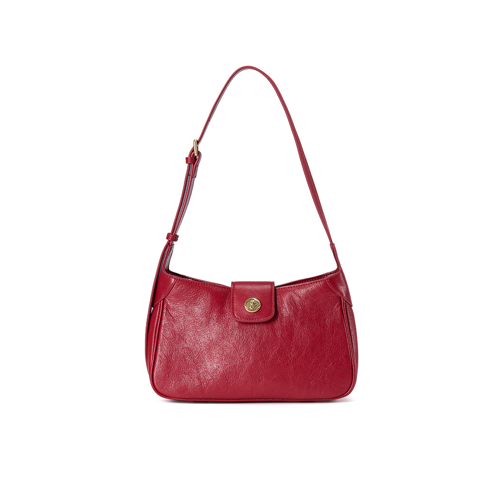 EMINIHOUSE/伊米妮气质法棍包头层牛皮红色复古单肩腋下女包化妆