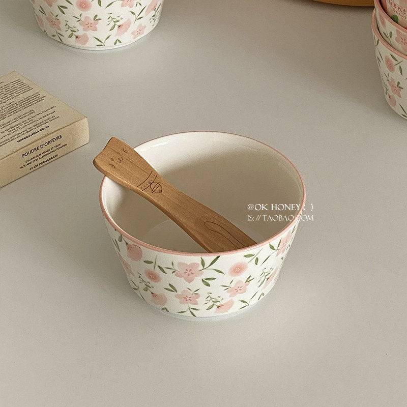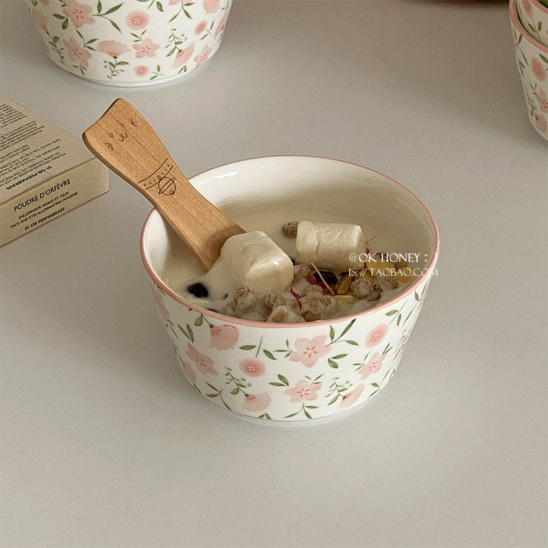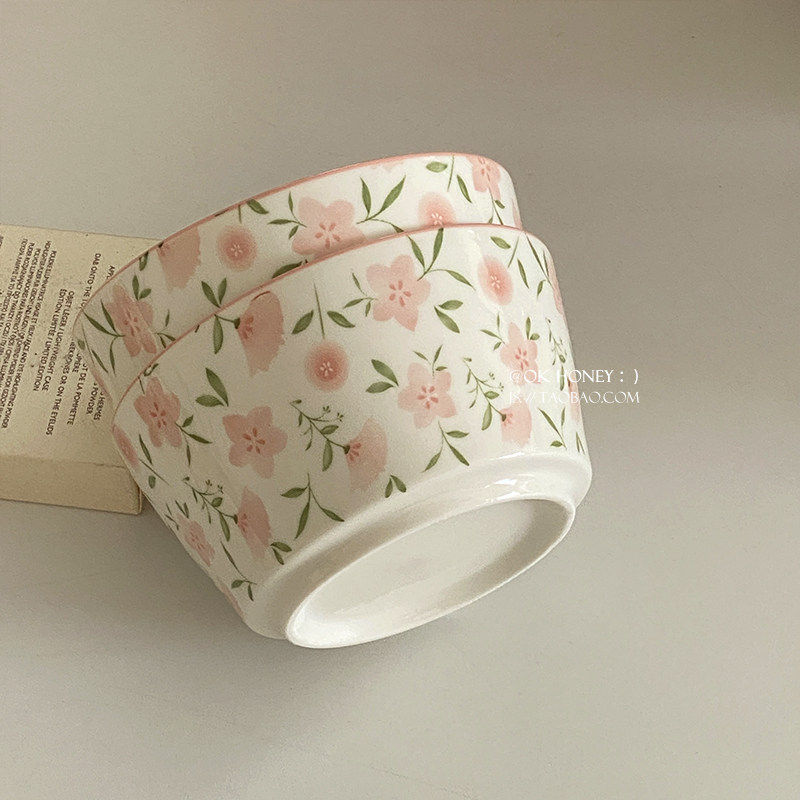 温柔粉色碎花陶瓷米饭碗ins韩式满满4.5英寸碗酸奶燕麦碗盘釉下彩