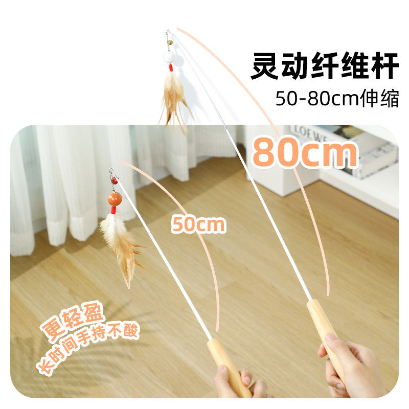 多可特逗猫棒长杆可伸缩小猫幼猫自嗨解闷猫玩具耐咬羽毛猫咪用品