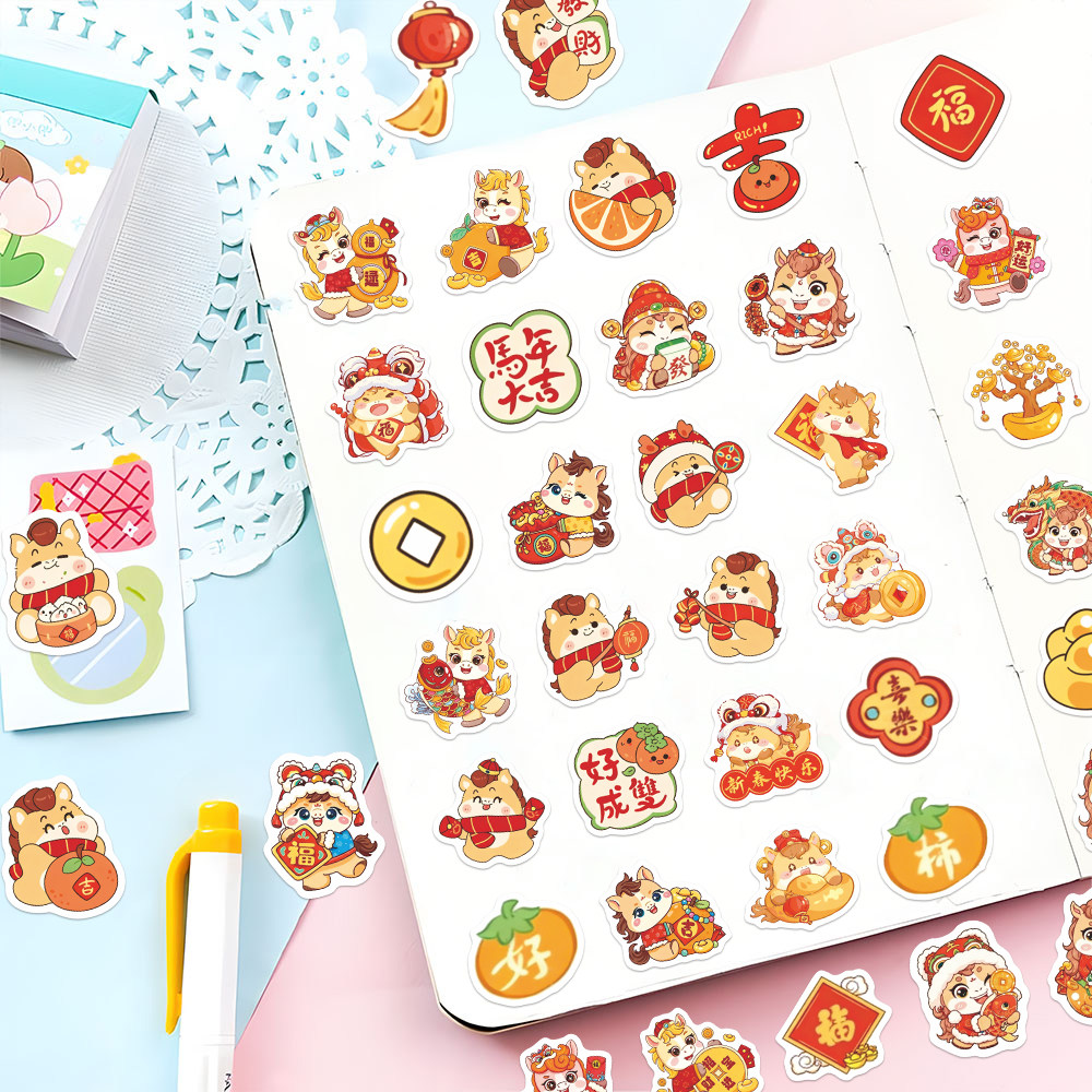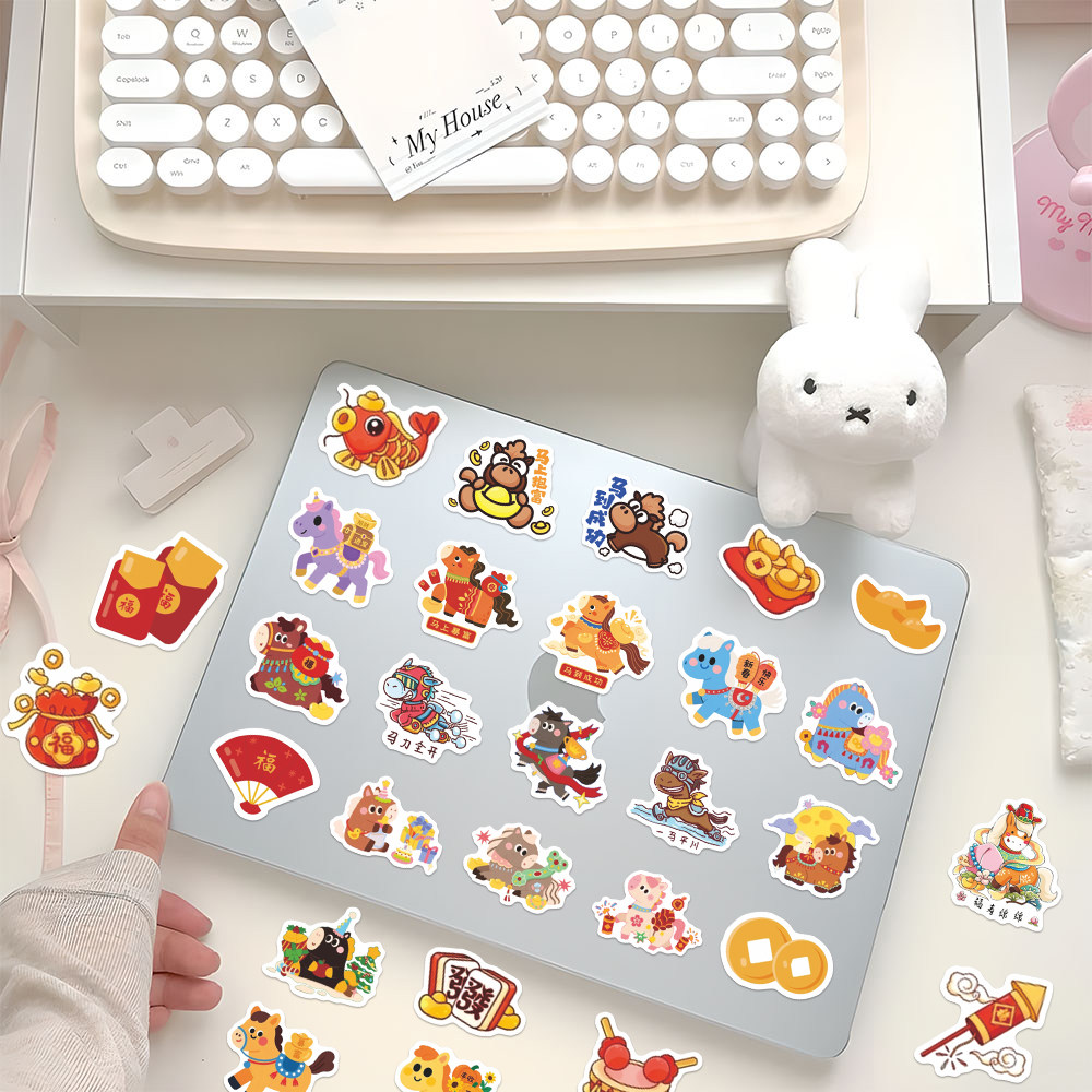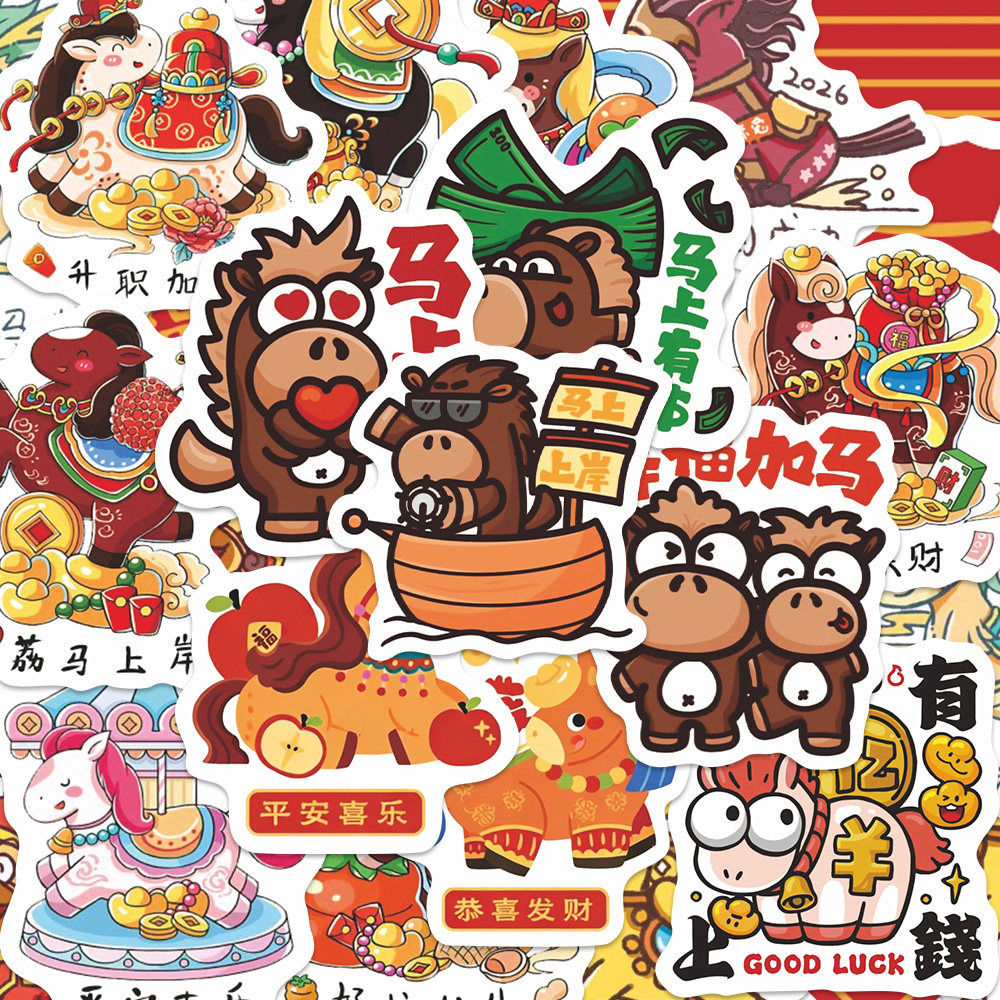 2026年新款马年精美表情包贴纸可爱喜庆小马手机壳diy装饰贴画